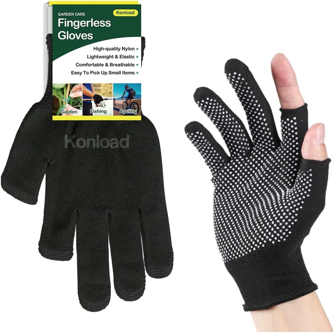 High Dexterity Nylon 13 Gauge Knit Glove with PVC Dots Plam Coated – Lightweight Half-Finger Breathable Fingerless Garden Gloves for Finshing Cycling(4 Pairs)