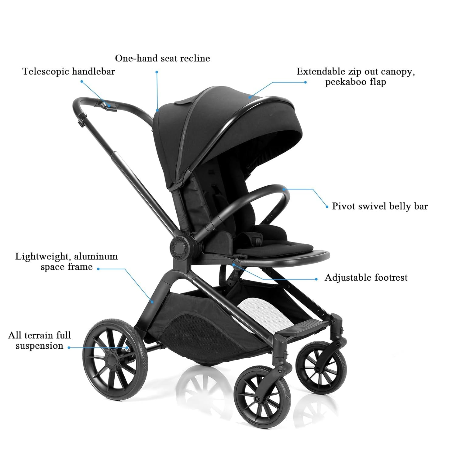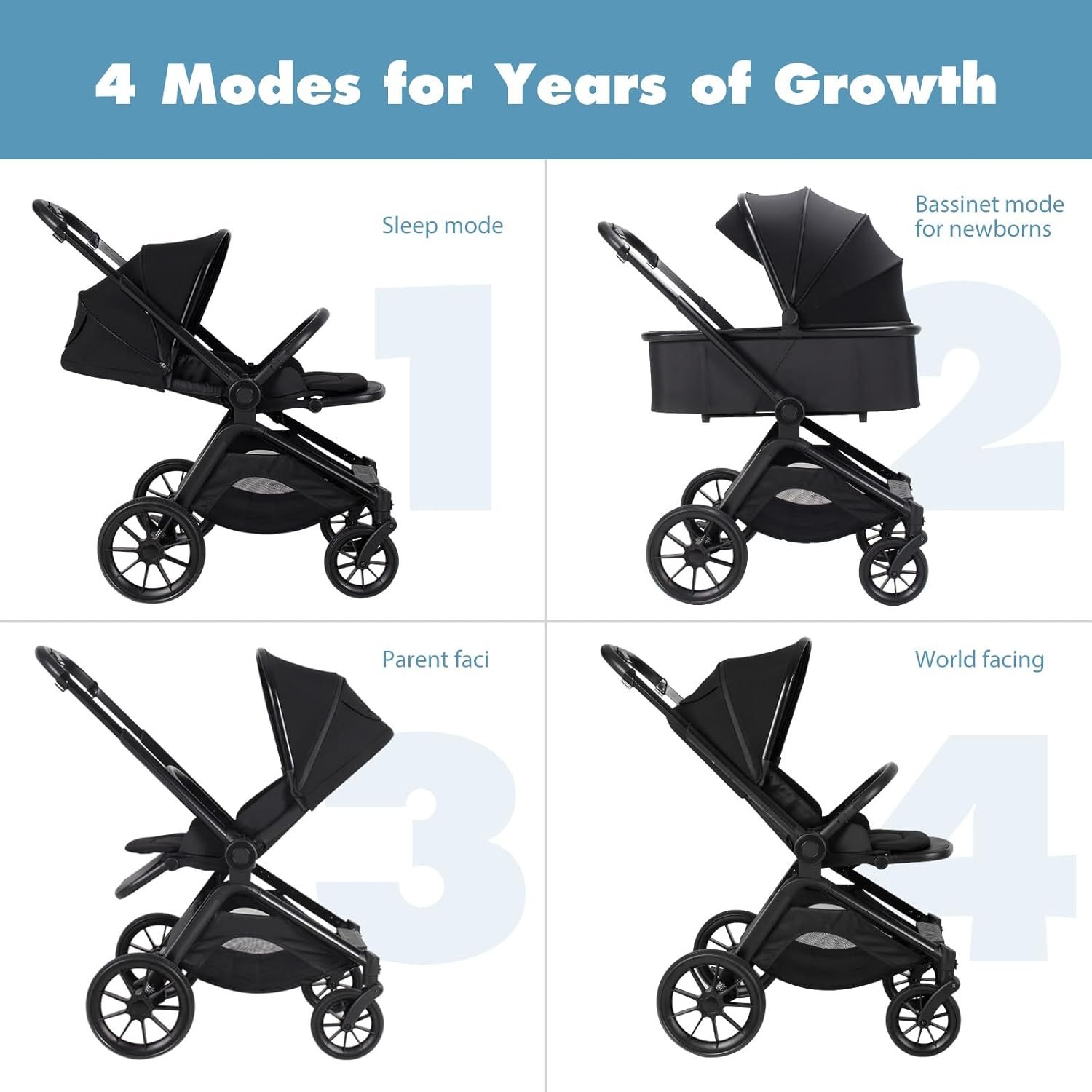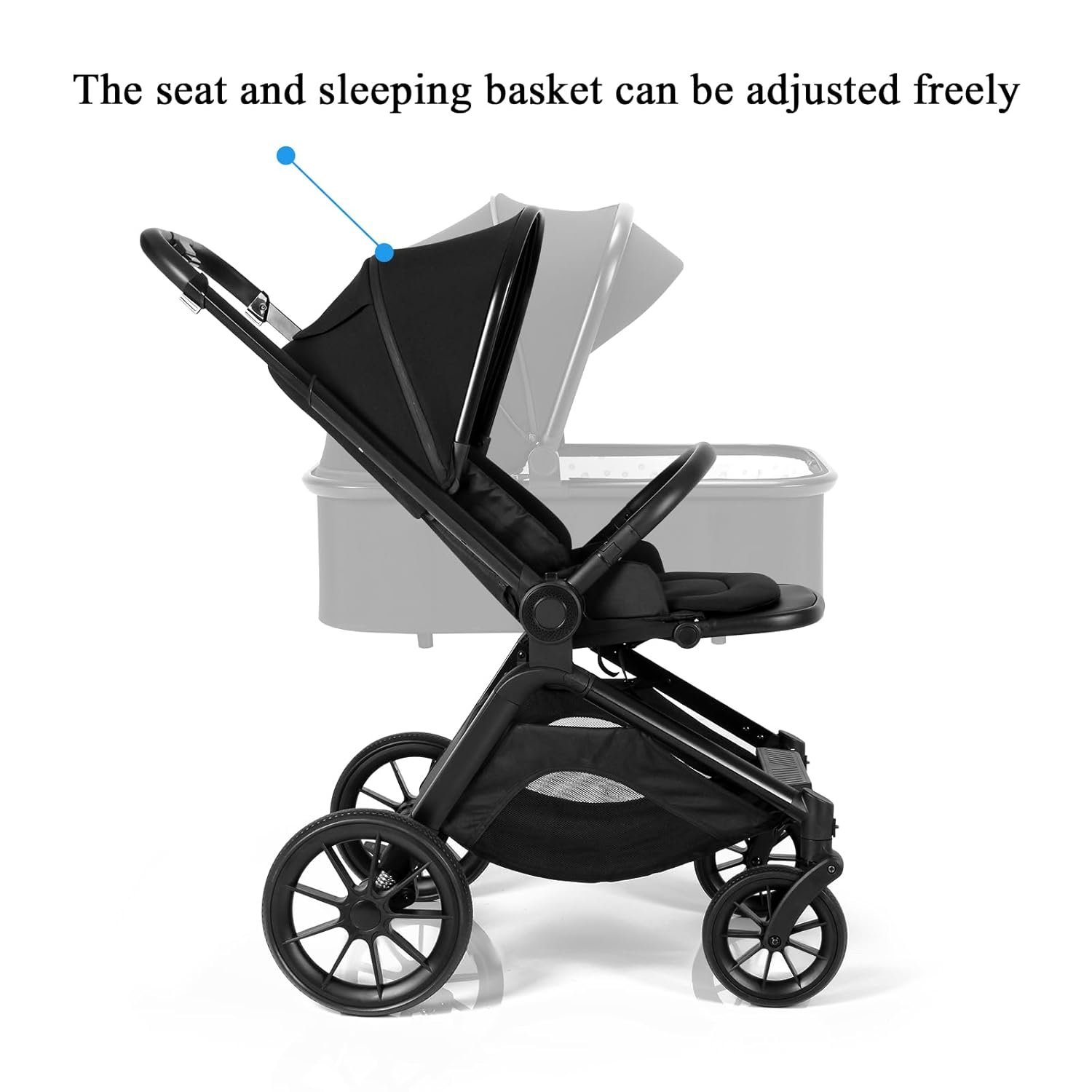 High Landscape Convertible Baby Stroller for Toddler with 1 Pack Removable Bassinet and 1 Pack Reversible Strollers Seat Full-Size for Comfortable Outings Bassinet Stroller