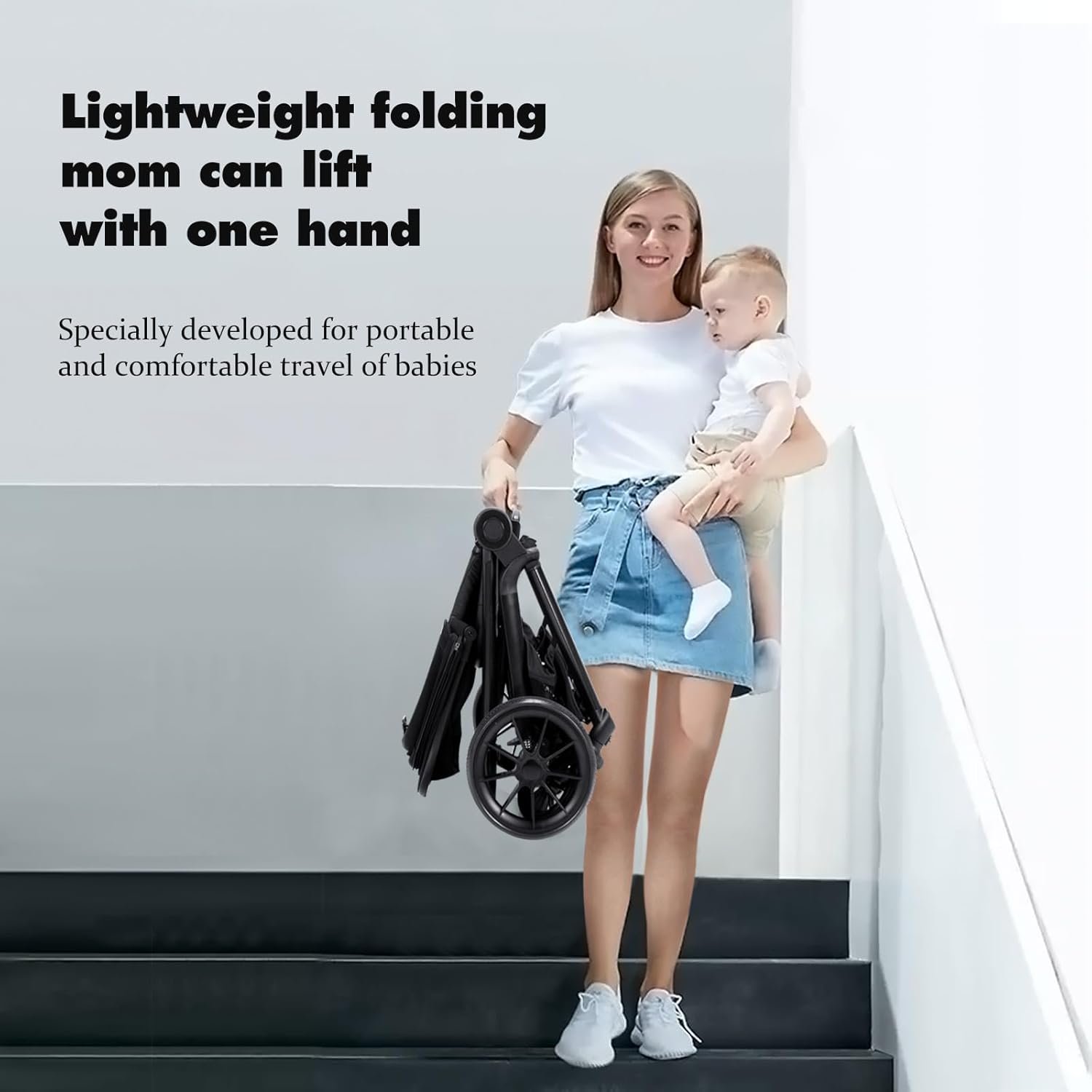 Lightweight and Stable – This baby stroller is made of aluminum material and weighs only 17 pounds. It is easy to carry and very suitable for families going out, reducing the burden on parents. This luxurious high landscape baby stroller is your best choice