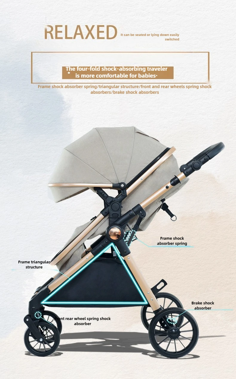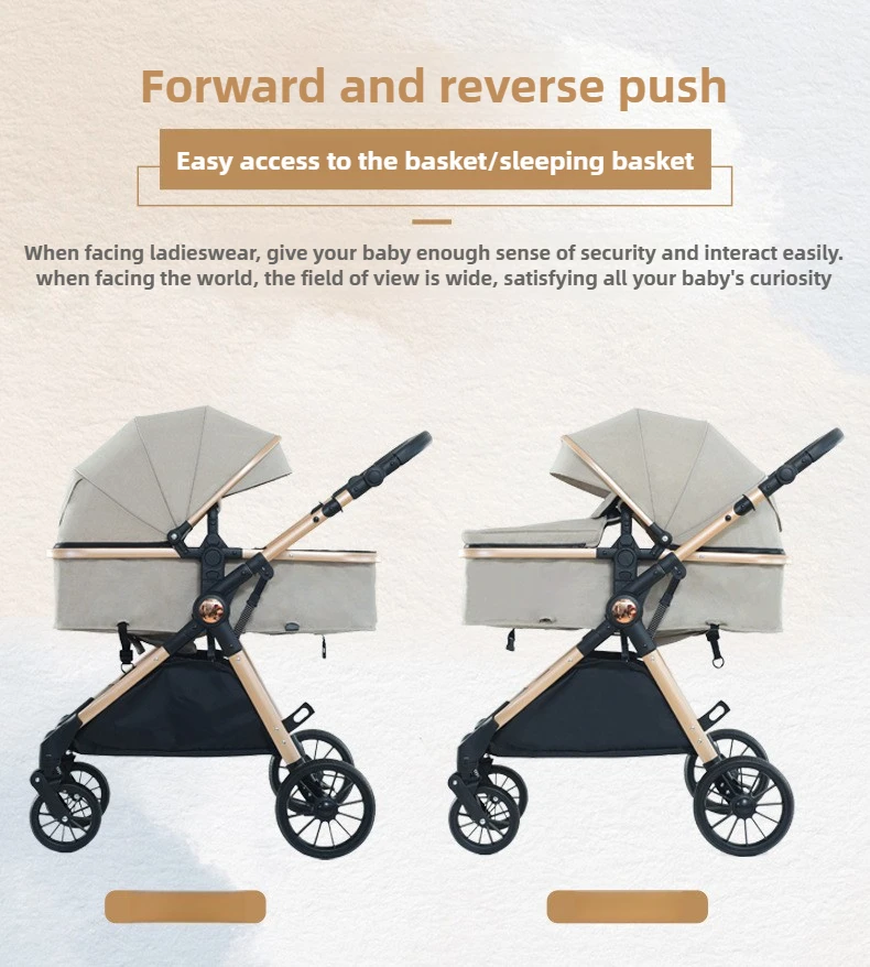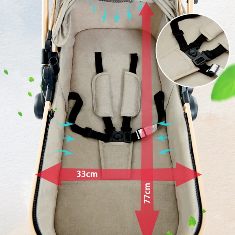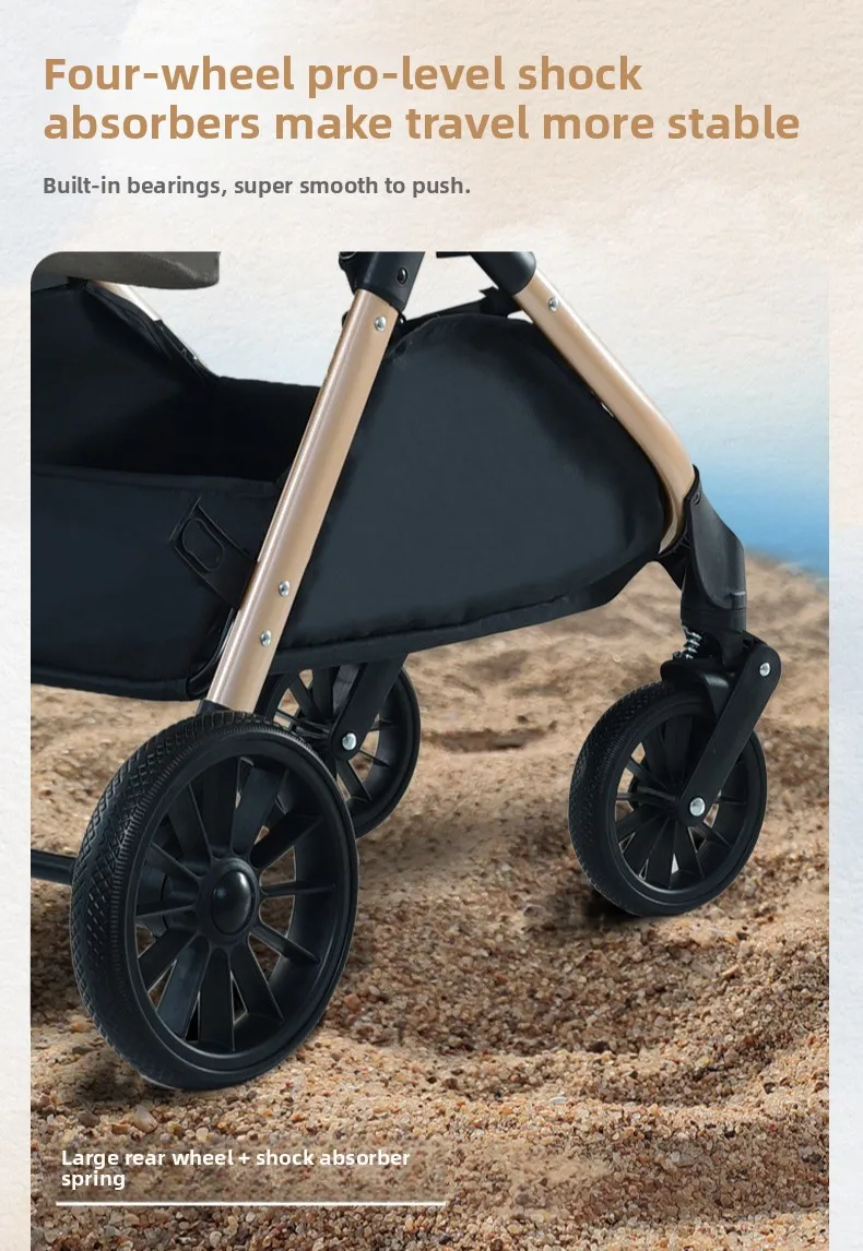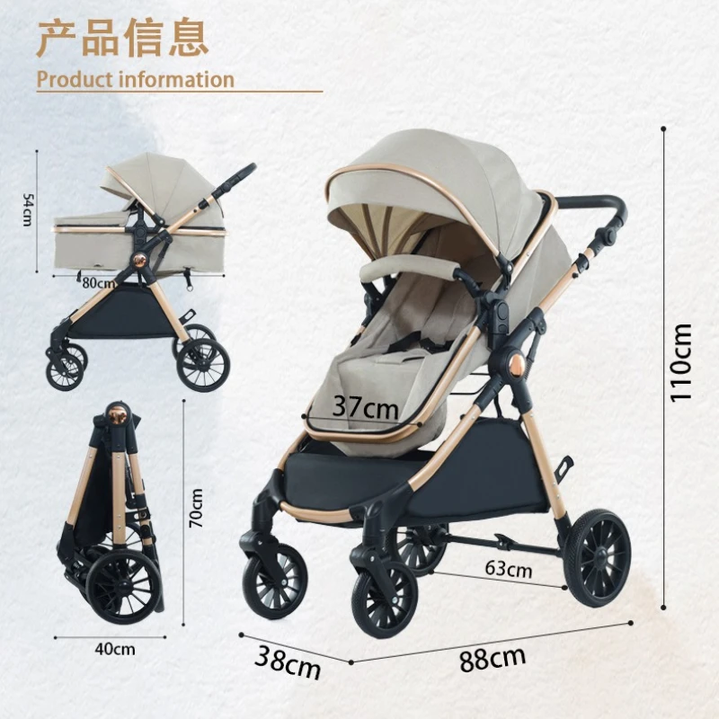 High Landscape Two-way Push Stroller Sit-down, Lightweight, Foldable Stroller with Four Wheels for Shock Absorption