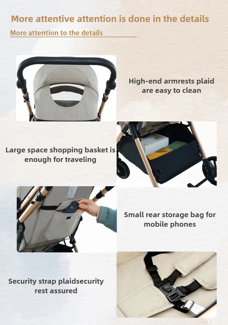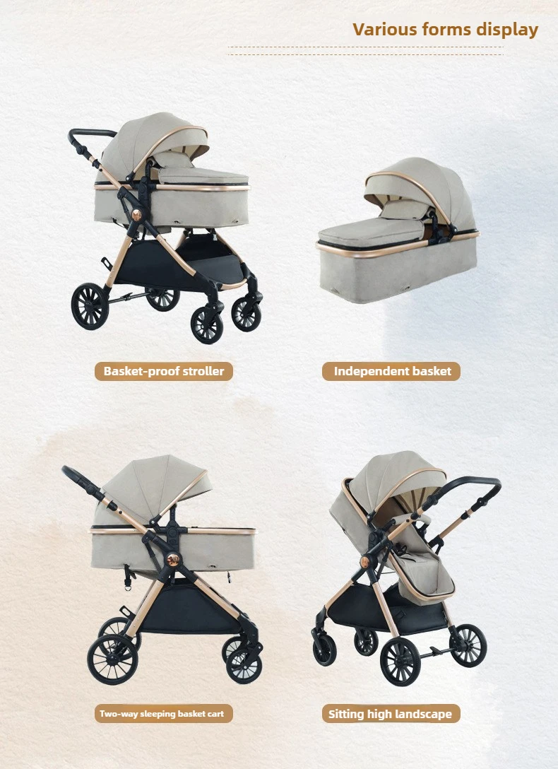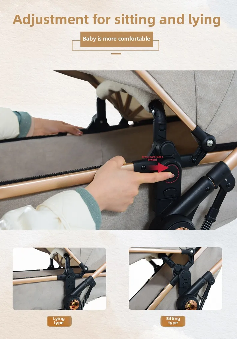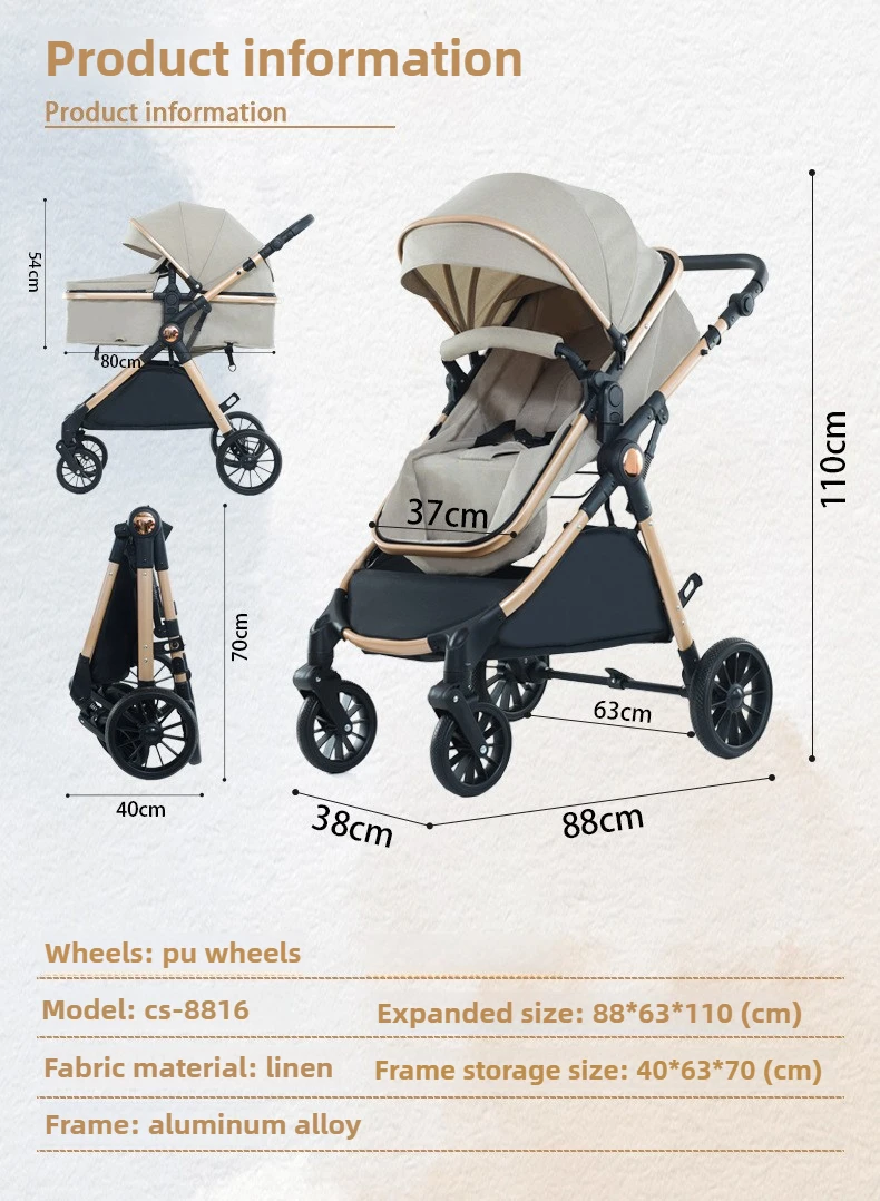 High Landscape Two-way Push Stroller Sit-down, Lightweight, Foldable Stroller with Four Wheels for Shock Absorption