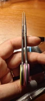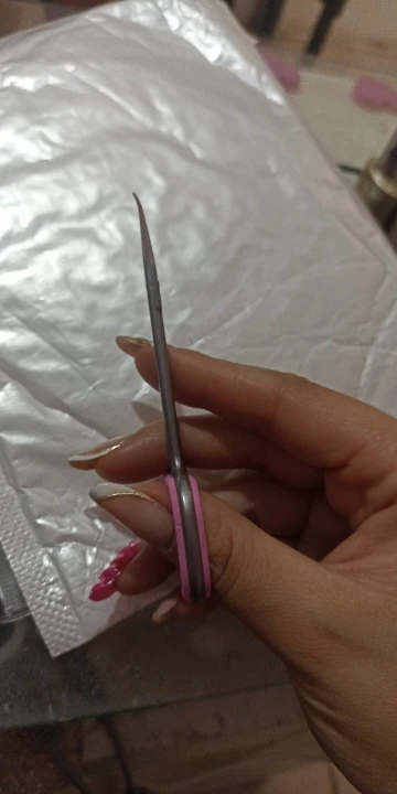 At first glance, the scissors look nice, but in my opinion, they are not sharp enough at the tip. And there’s also a feeling that the ends themselves (literally 1 mm) are a bit blunt or broken. Compared it with my favorite ones from Staleks (with a hook). On the right are those purchased with pink elastic bands, and on the left are from Stalex.