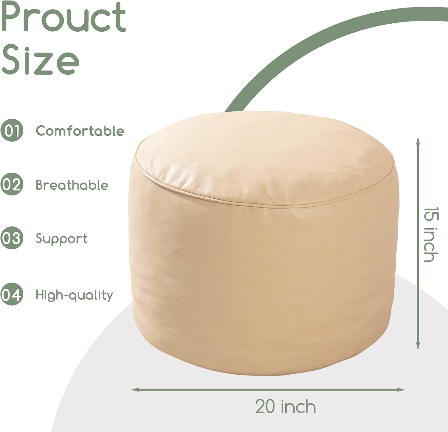 The HIGOGOGO pouf ottoman with a soft and Pu Leather outer layer and full filling, making it perfect for use as an ottoman foot rest or seat cushion.20 X 15 inch size, this ottoman pouf