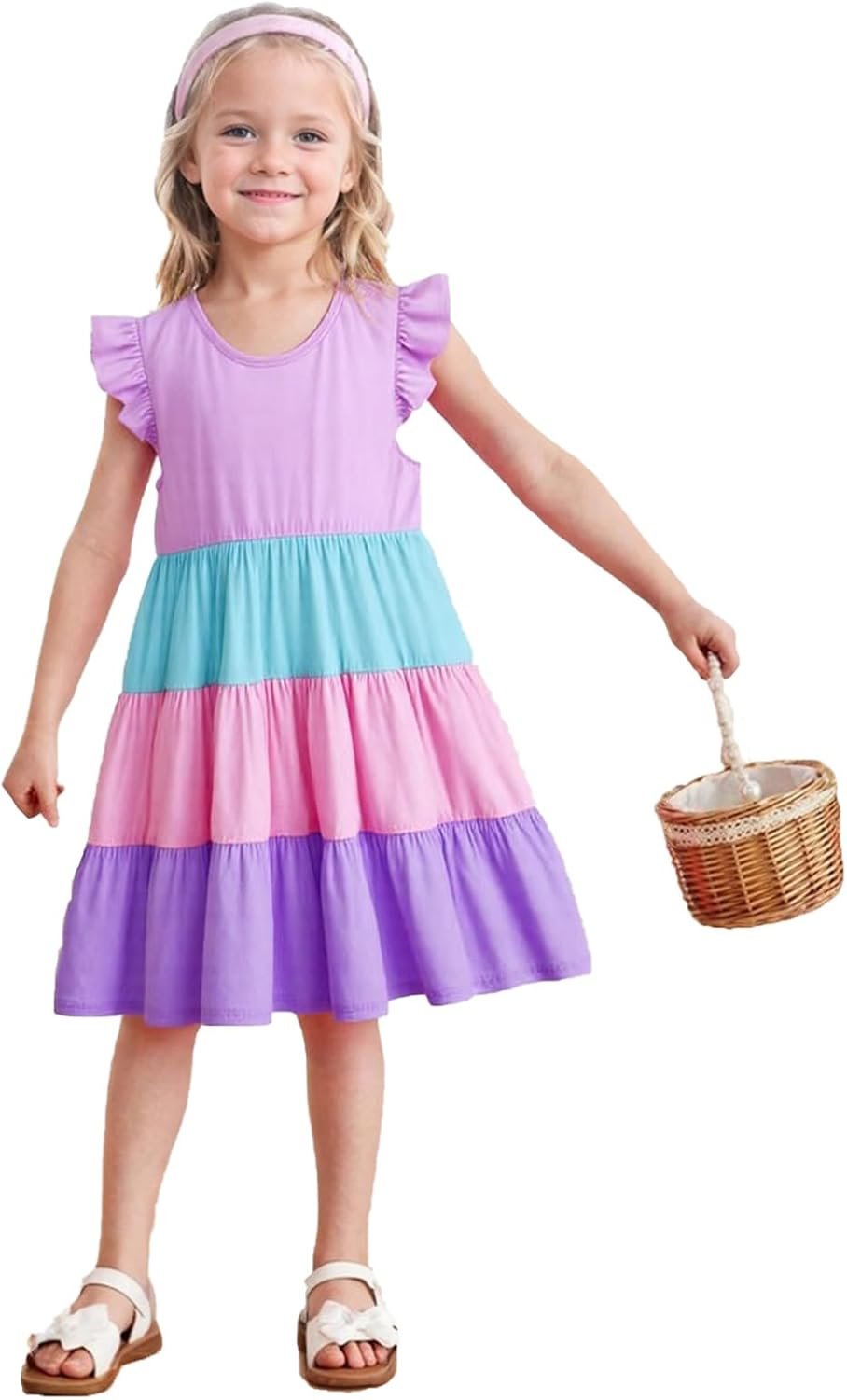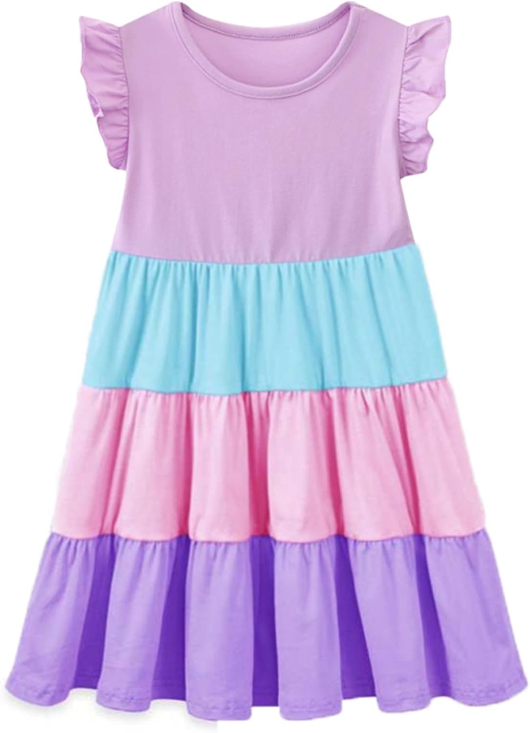 HILEELANG Little Girls Short Sleeve Dresses Easter Summer Cotton Casual Skater Swing Twirly Sundress