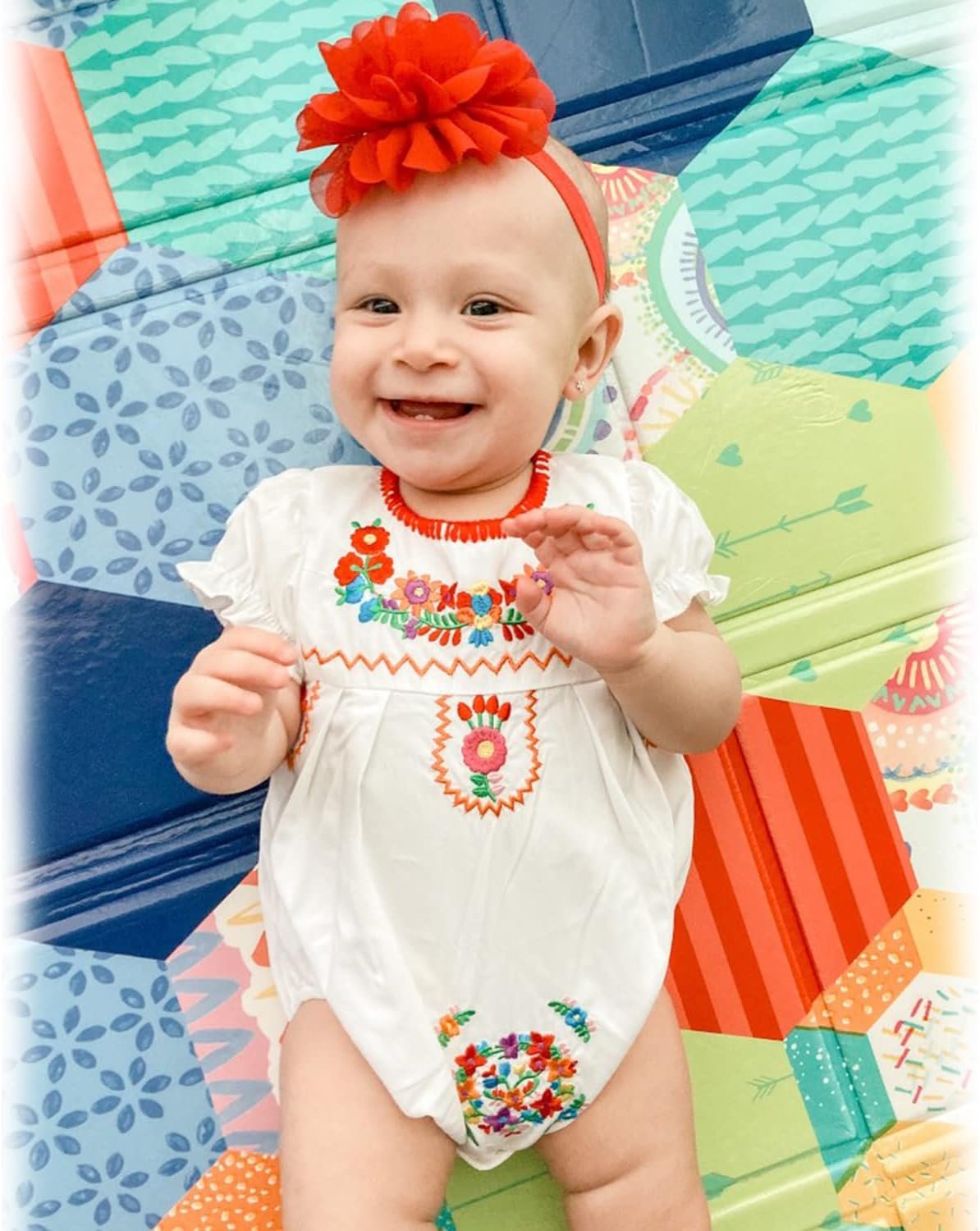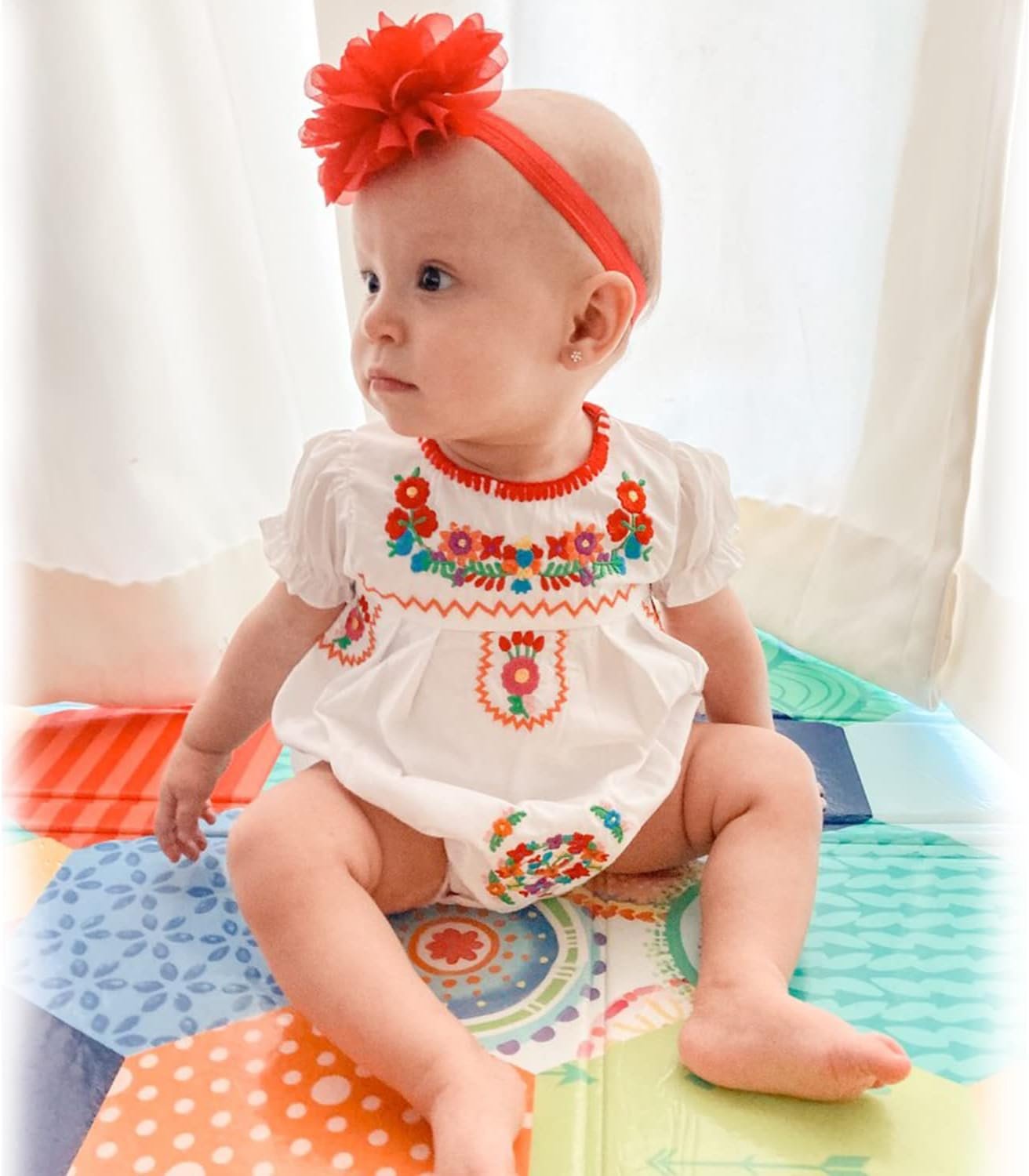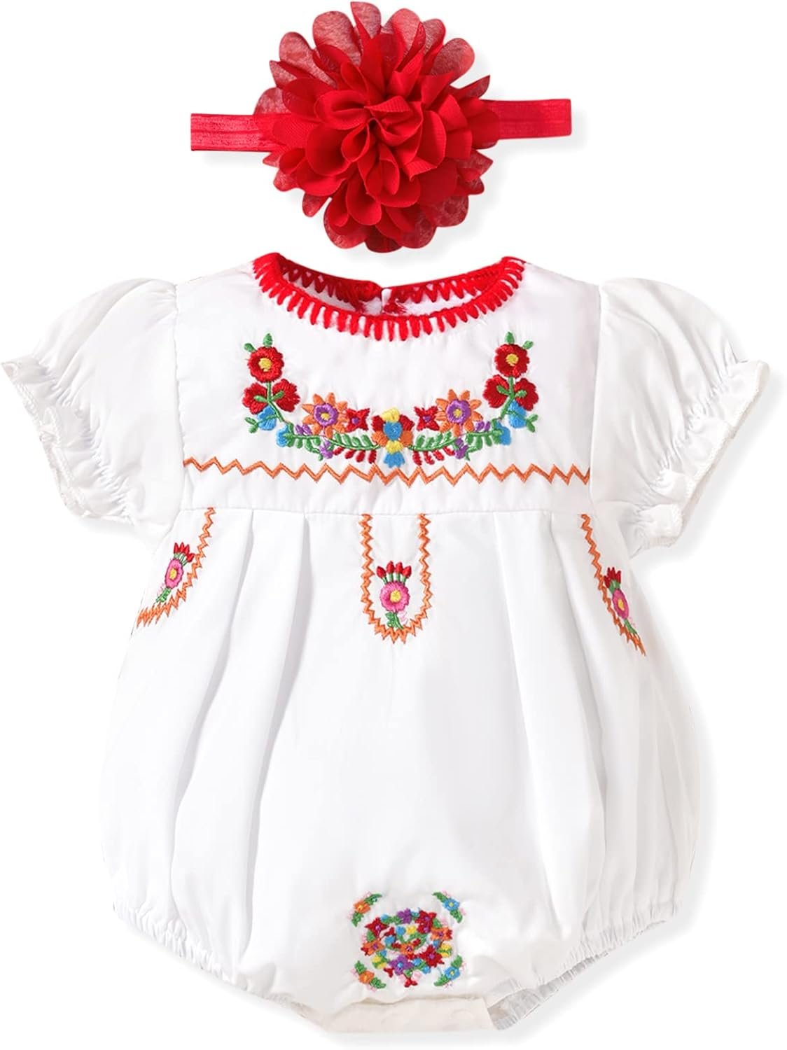 HINTINA Newborn Baby Girl Mexican Ethnic Embroidery Floral Bodysuit With Headband