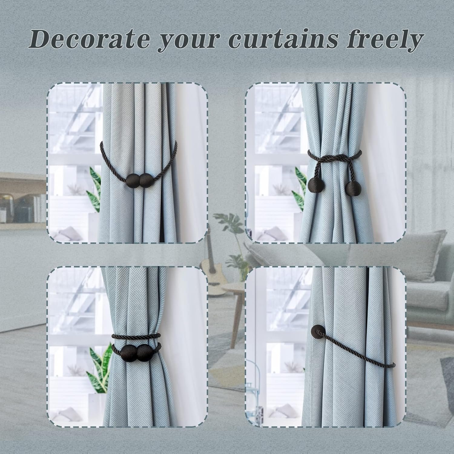 [Upgrade Powerful Magnetic] Our magnetic curtain tiebacks magnets use high-end new imported nickel-plated magnets, with strong corrosion resistance and durability, more magnetic than ordinary magnetic curtain tiebacks, and do not rust and not lose color. The rope of curtain tie adopts upgrade thickened solid polyester yarn, which is not only durable, but also not easy to wear or pilling.