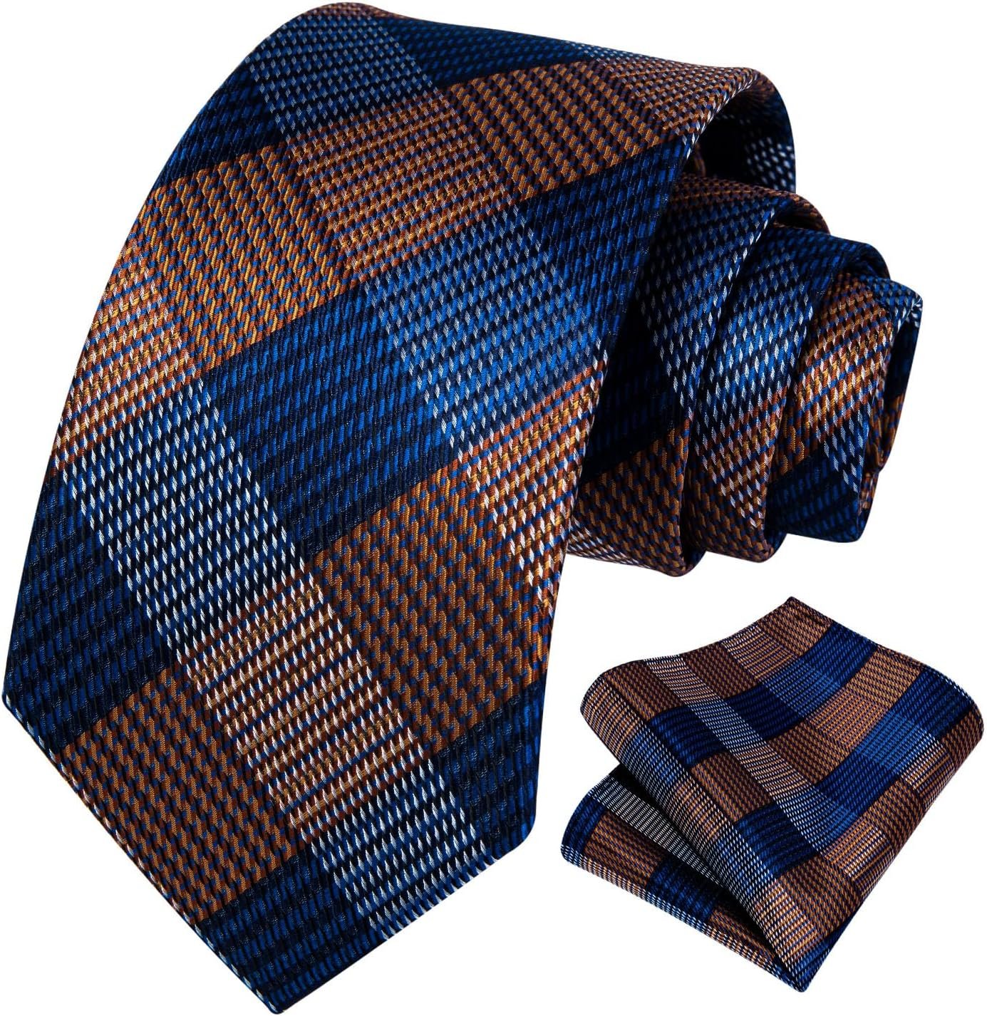 Ties for Men Holiday New Year Christmas HISDERN Burnt Orange Tie and Pocket Square Set