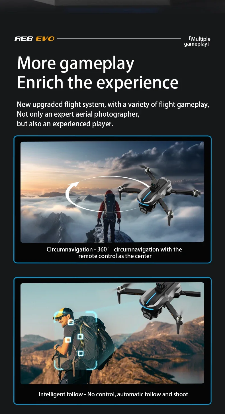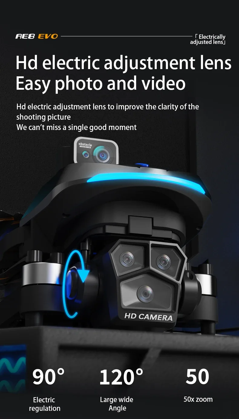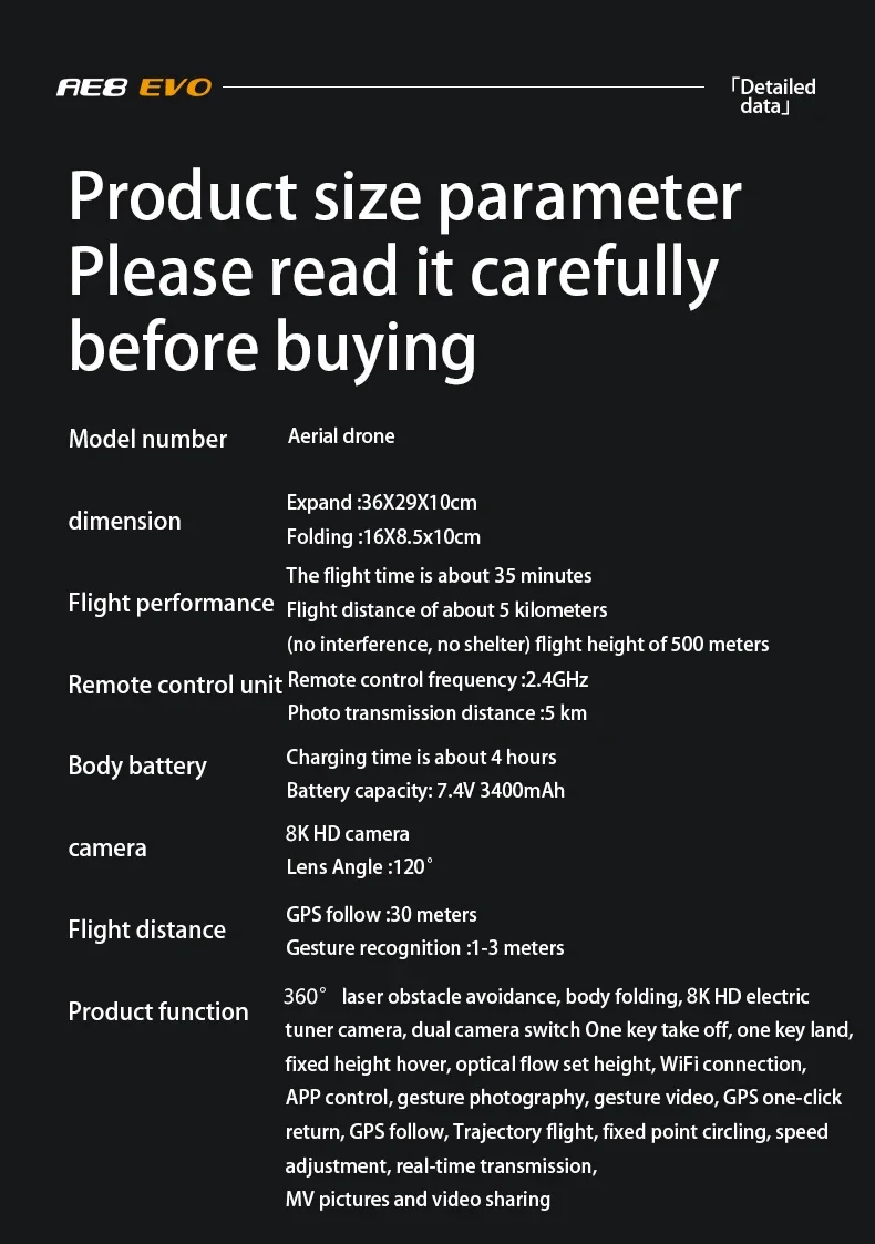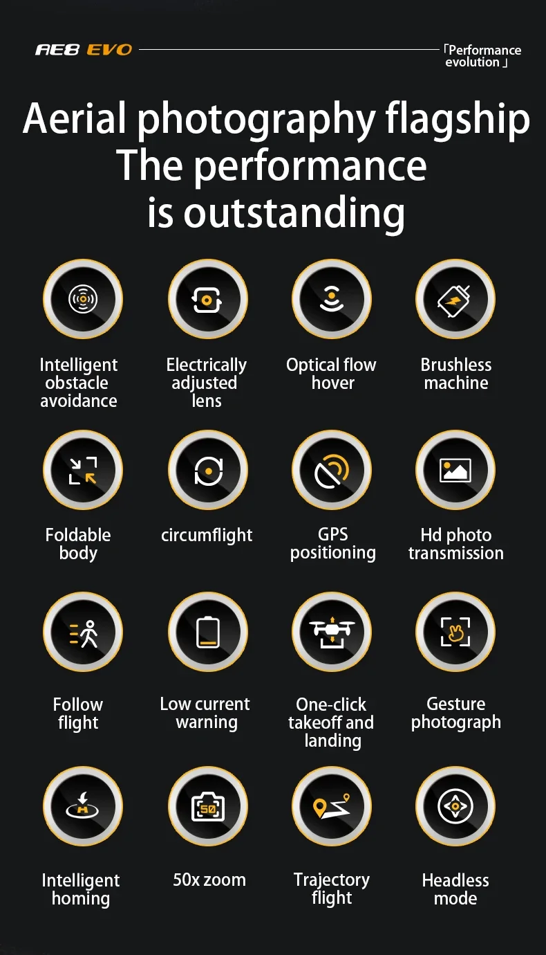 360° omni-directional laser obstacle avoidance GPS positioning plus optical flow positioning dual mode, dual camera switching, brushless motor, 8K pixels, equipped with electrically adjustable continuously adjustable 90-degree camera, uncontrolled return, LCD remote control, low power return, one key return, about 23 minutes of battery life, 5g high-definition mapping, intelligent following, gesture photo and video recording, 50 times zoom of the screen, point of interest surroundings