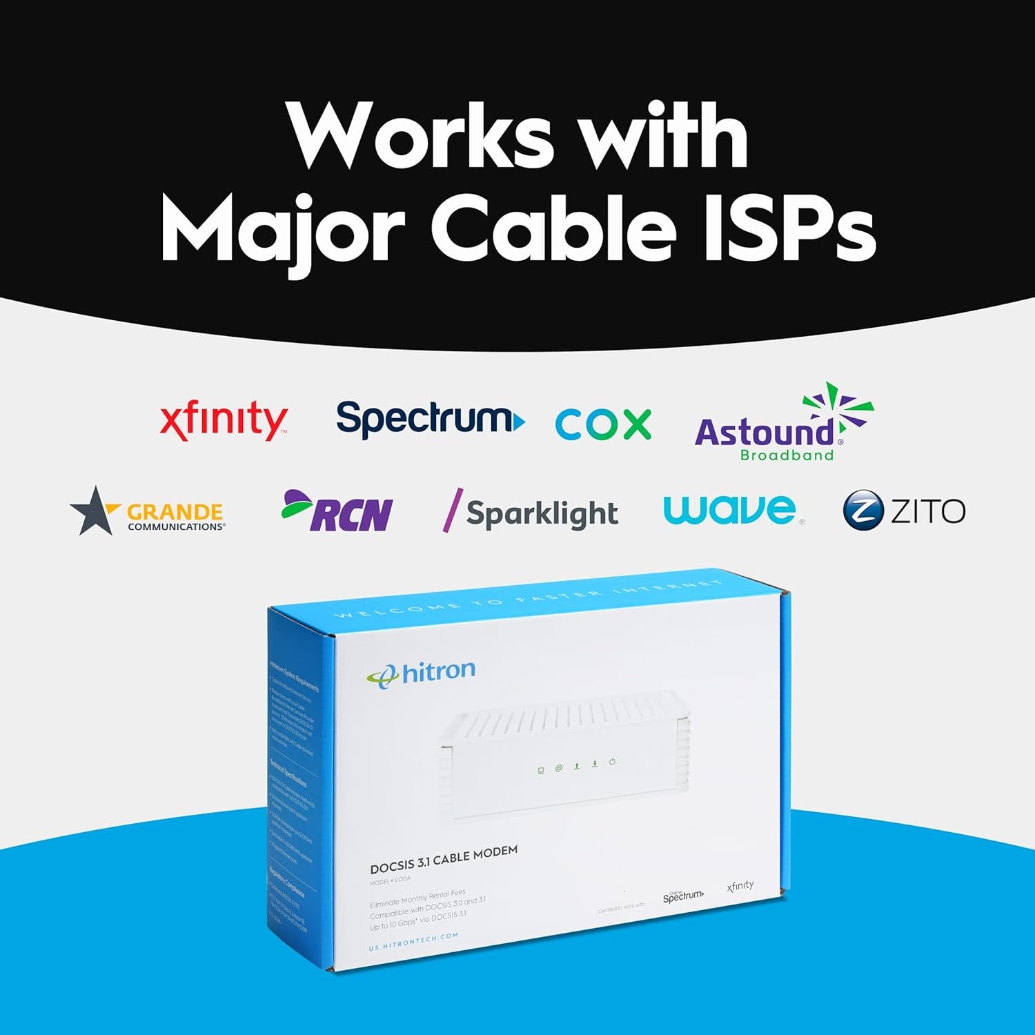 Hitron CODA DOCSIS 3.1 Cable Modem ONLY | Up to 1 Gbps Max Internet Speeds | Certified with Comcast Xfinity, Charter Spectrum, Cox & More | Requires Separate WiFi Router