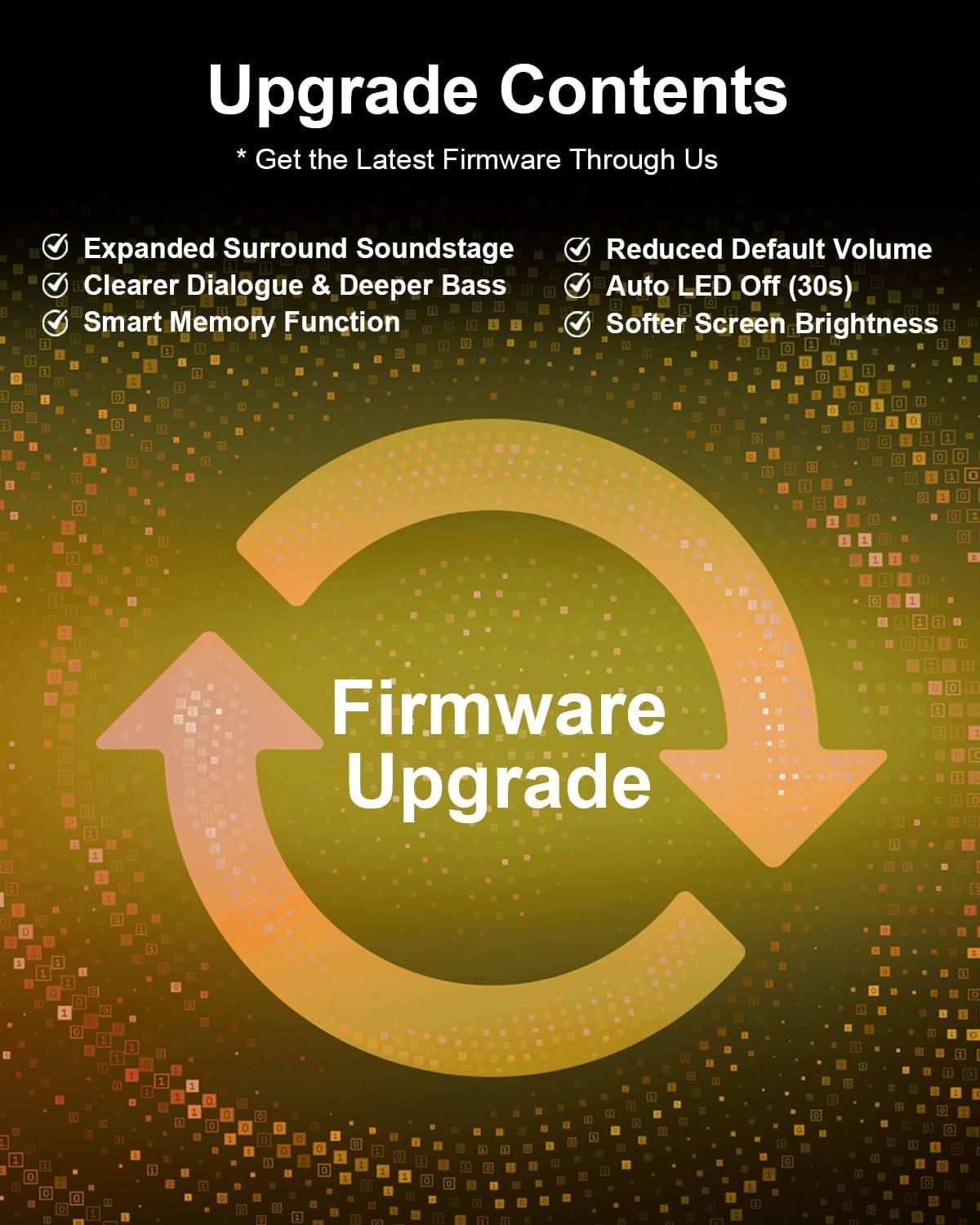 Note: New Firmware for Added Personalized Memory Function and other Performance– This customized firmware is available and can be applied as needed if you wish to use it.