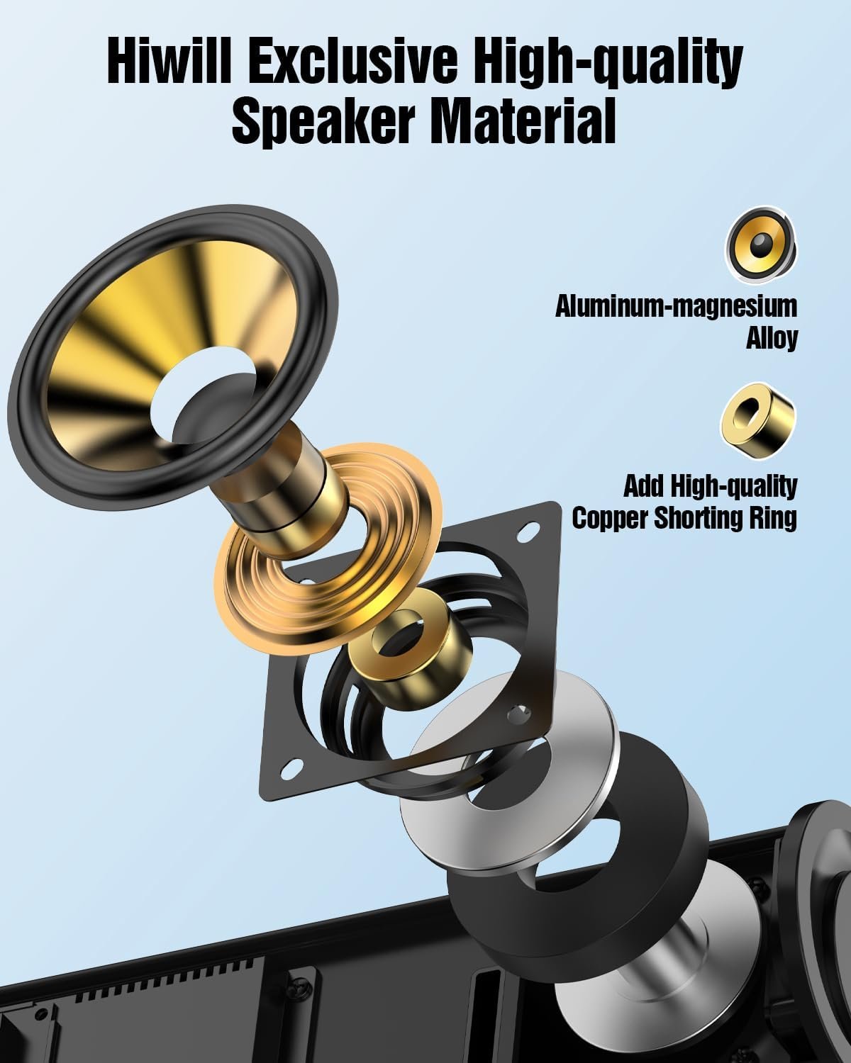Crafting Superior Sound with Premium Materials : Delivers exceptional audio through superior craftsmanship and premium materials. Featuring high-end aluminum-magnesium alloy diaphragms, the system ensures optimal sound quality with lightweight design, excellent conductivity, and high rigidity. Each driver is enhanced with the copper shorting ring to reduce interference and improve signal clarity, creating a truly immersive, high-quality audio experience.