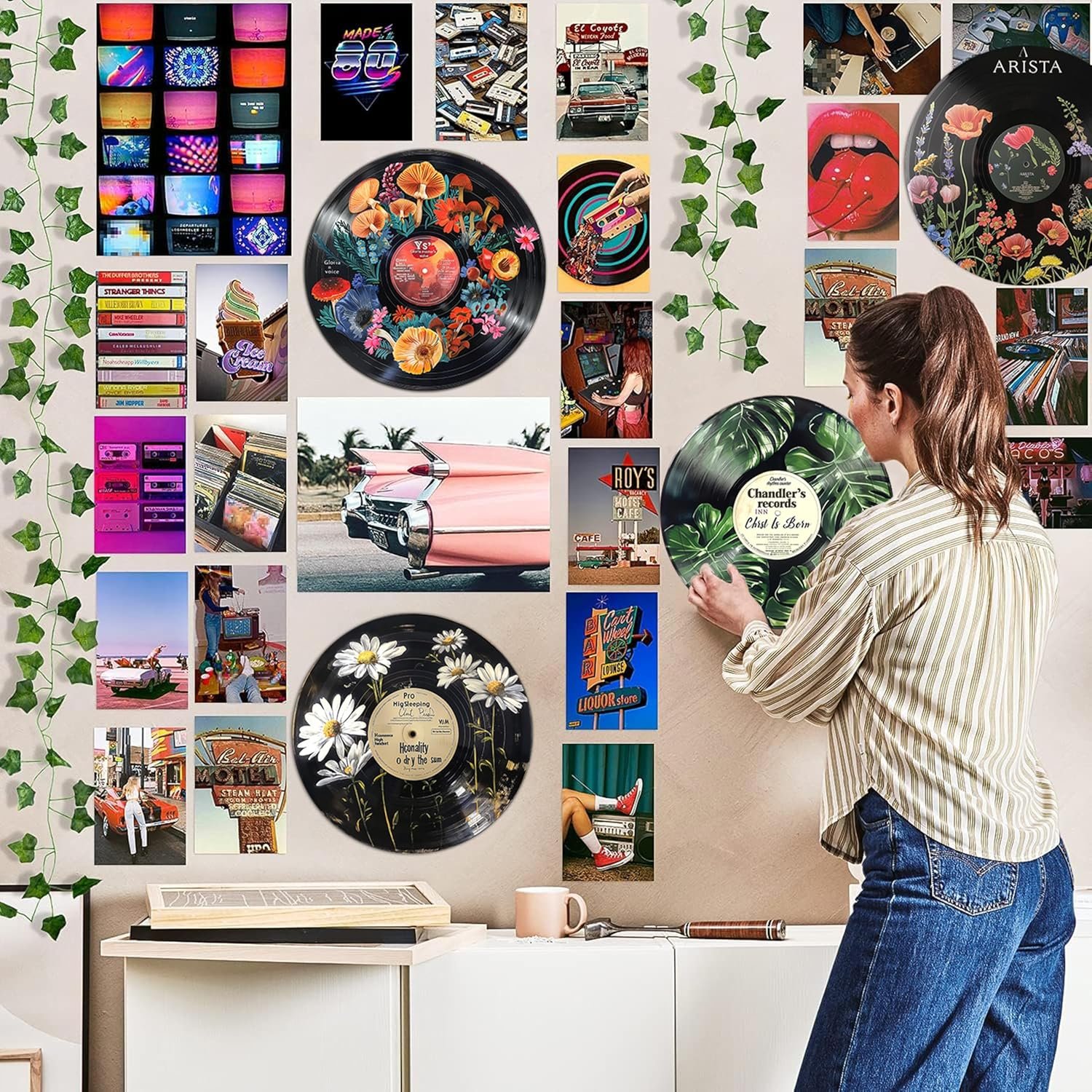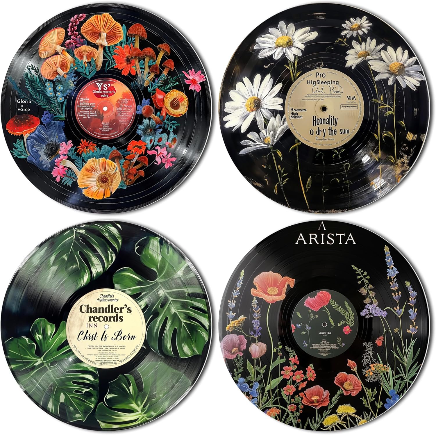 HK Studio Hippie Decor, Posters for Room Aesthetic – Botanical Wall Art, Record Decor, 4pcs 12″
