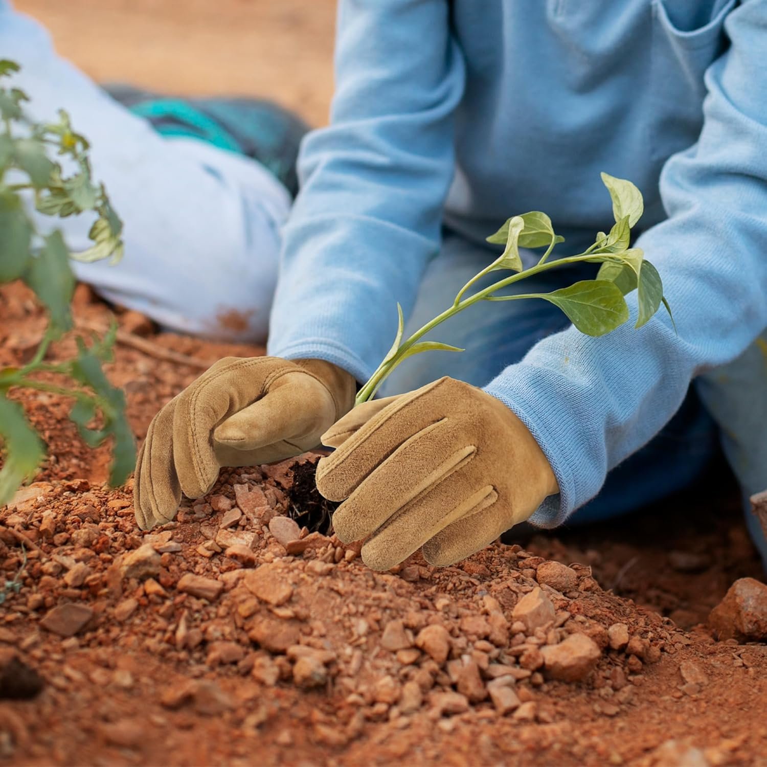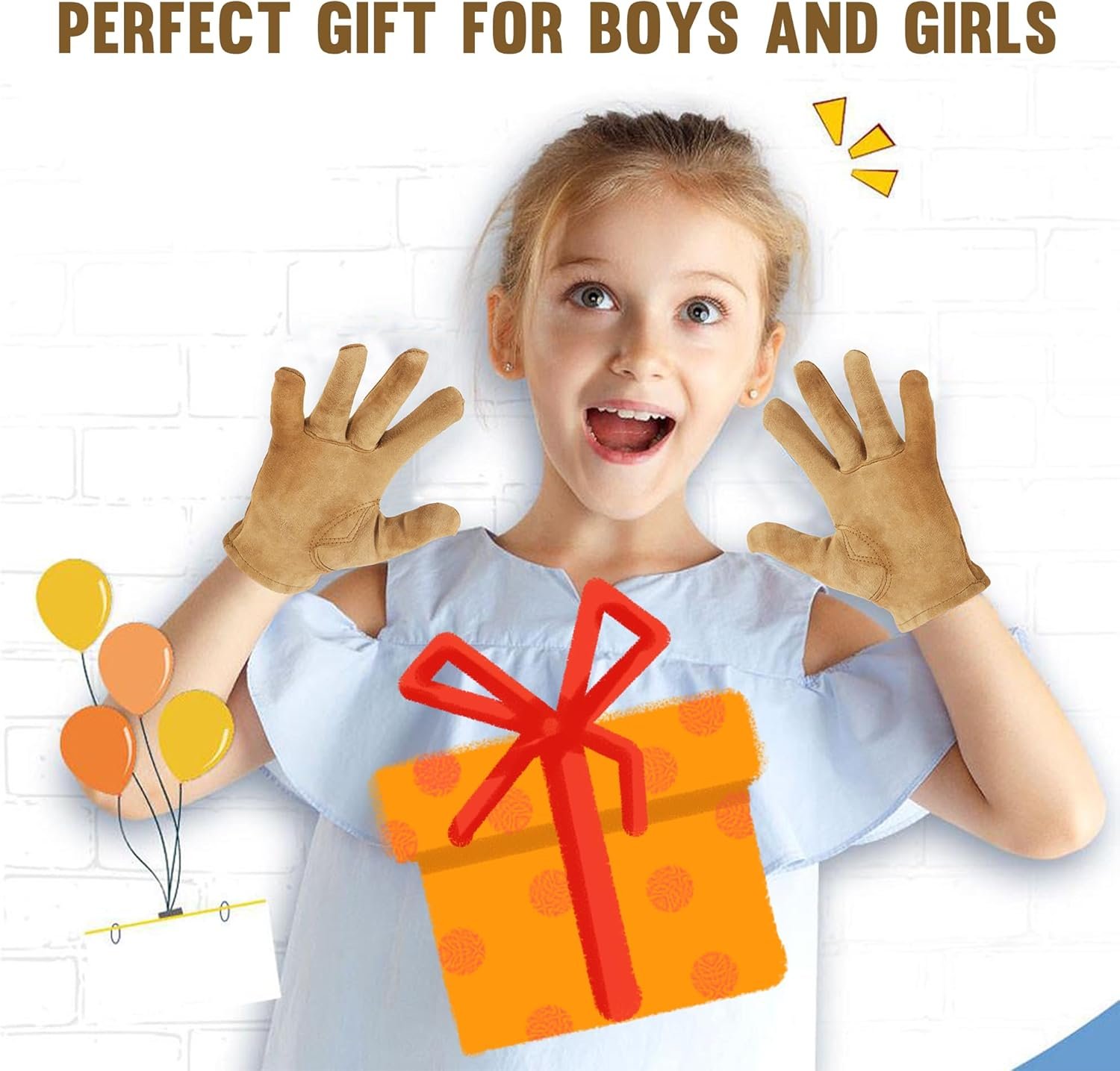 HLDD HANDLANDY Kids Gardening Gloves, Childrens Leather Work Gloves for Boys Girls Age 2-11, Great Gift for Yard Work