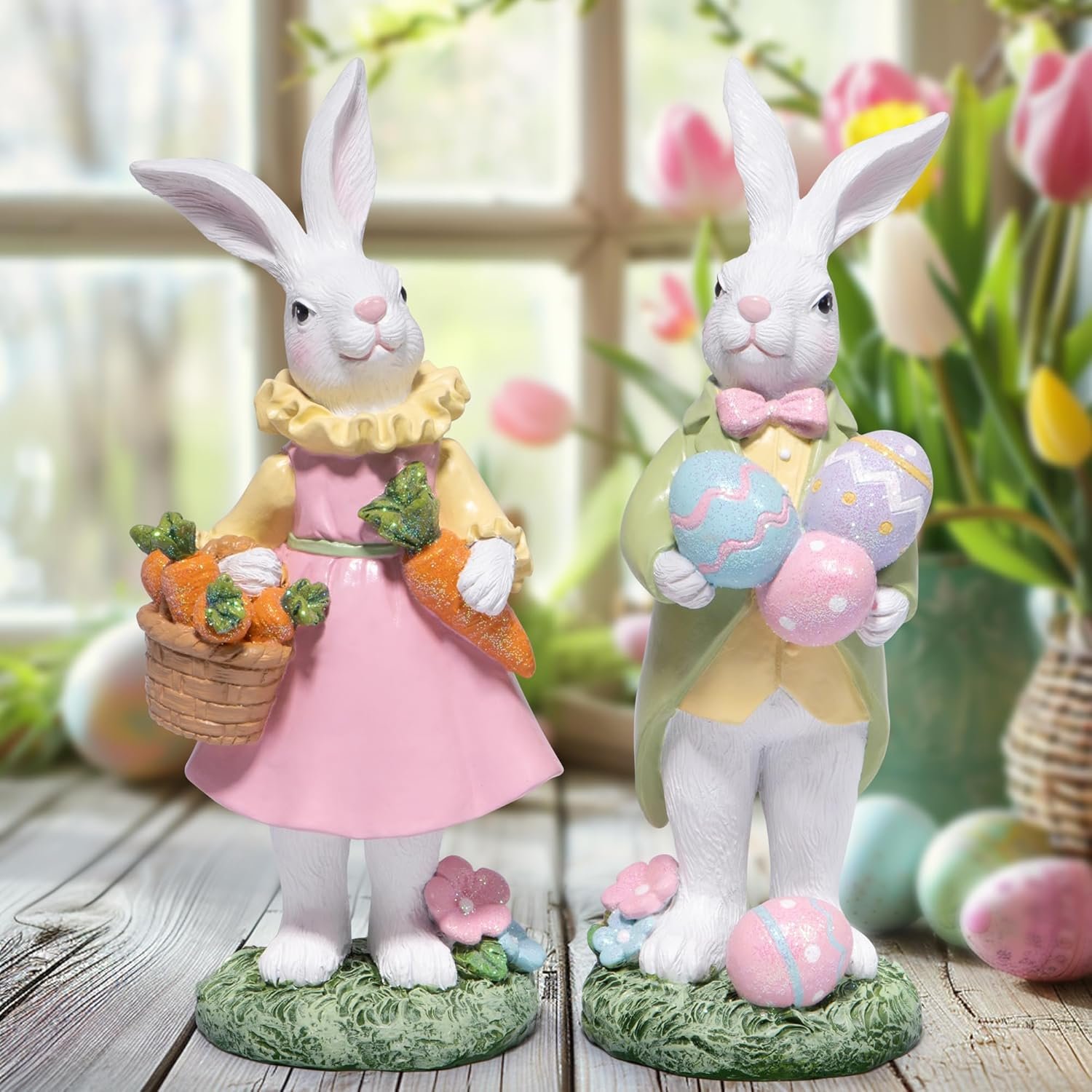 EASTER STORY AND HERITAGE: More than just decorations, these bunnies symbolize the hope of spring and the rebirth of life at Easter. By incorporating these bunnies into your holiday décor, you are also telling the story of Easter traditions and springtime recovery, bringing holiday education and emotional connection to your family, especially your children.
