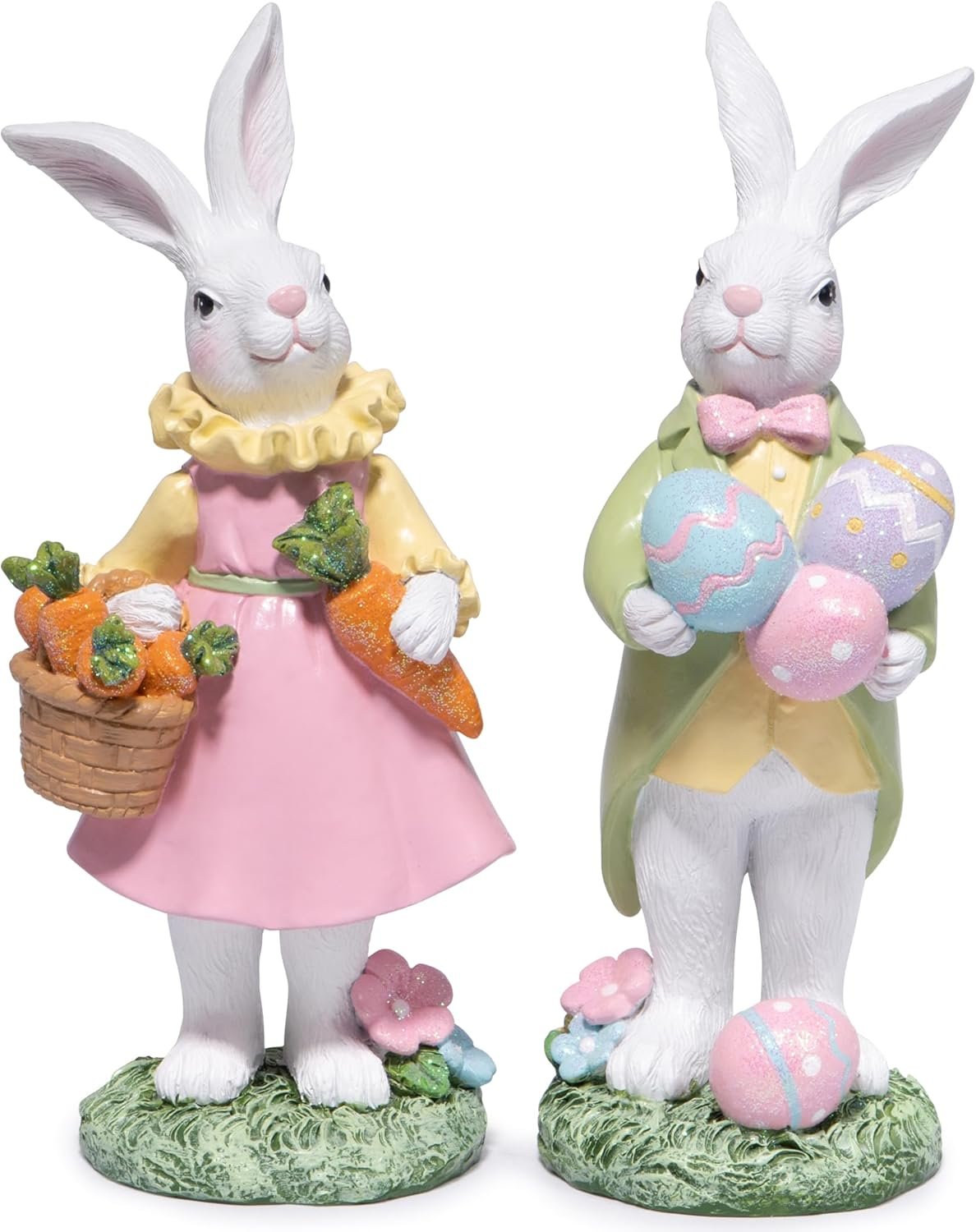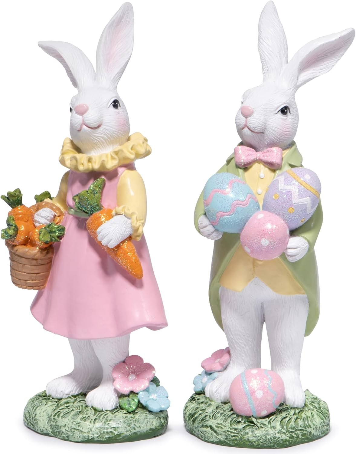 Hodao Easter Bunny Figurines Set of 3 – 5.3″ Hand-Painted Resin Decorations with Pastel Easter Egg Design – Perfect for Spring Décor, Tabletops, and Festive Displays (White 2pcs)