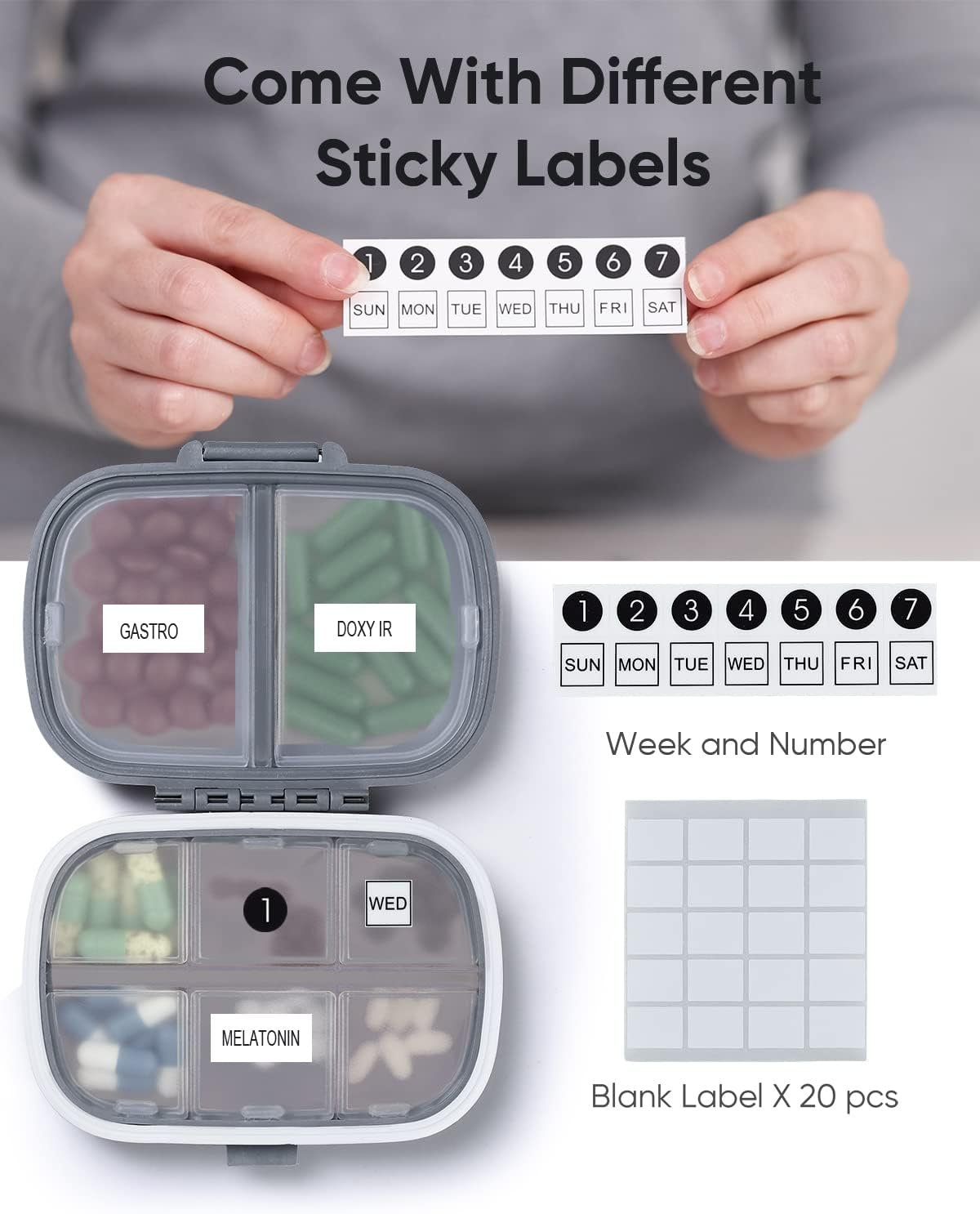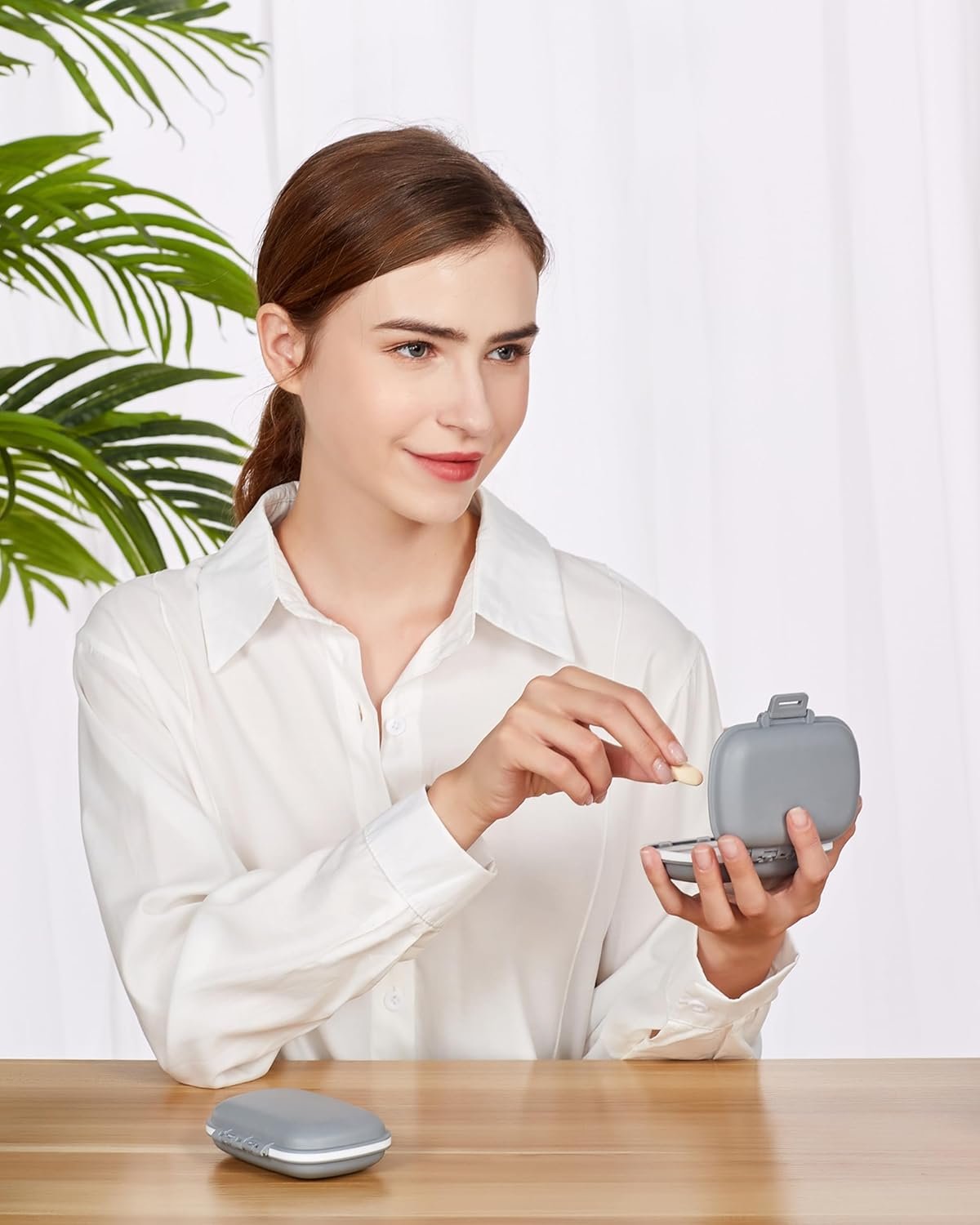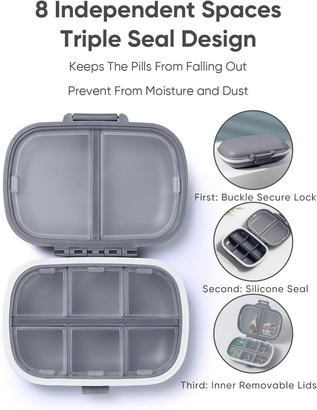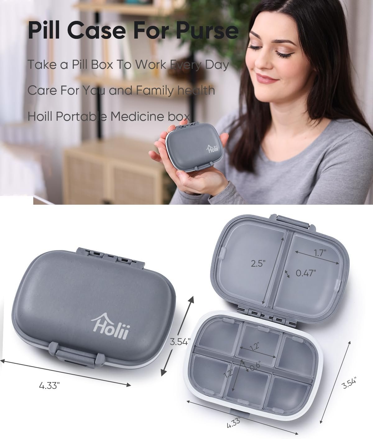 Holii Travel Pill Organizer, 8 Compartments Portable Pill Case, Daily Pill Box to Hold Vitamins, Small Pill Container for Pocket Purse Medicine Organizer(Gray)