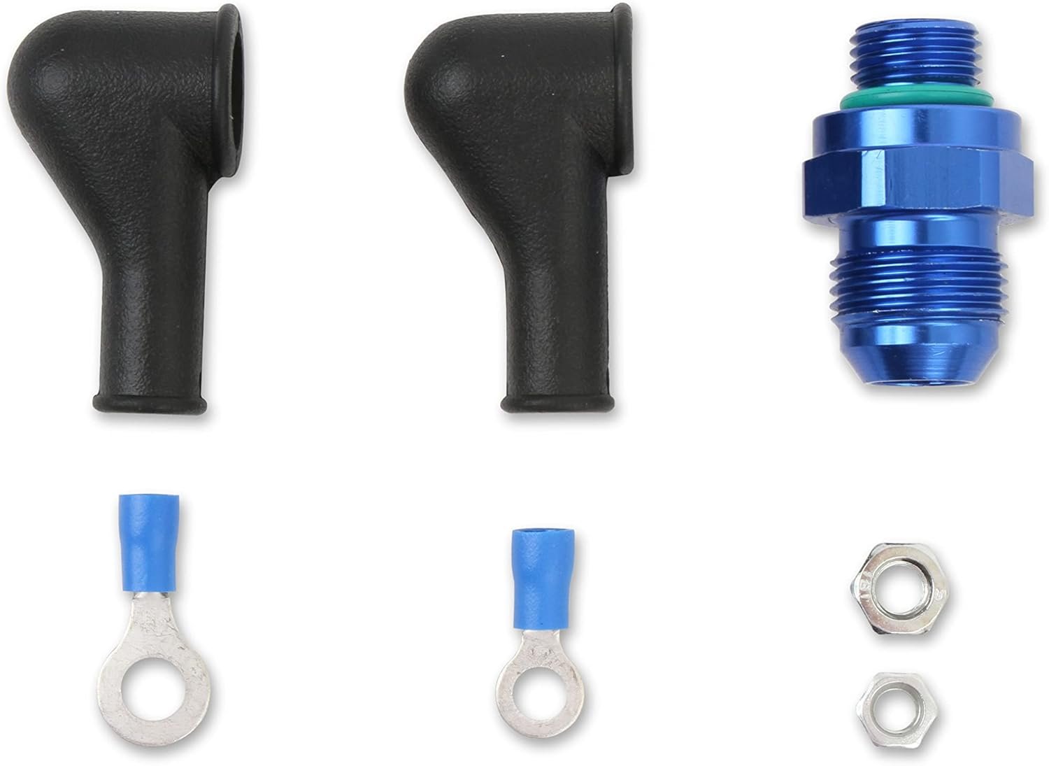 Kit includes fuel pump, -6 to -8 male AN discharge fitting with check valve, terminal nuts & boots, instructions