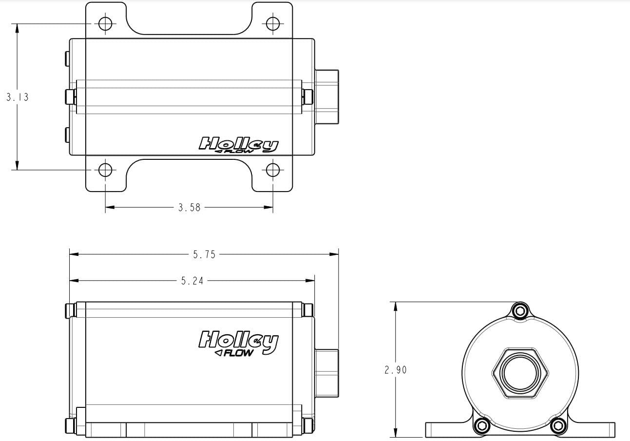 Holley’s 100 GPH (gallons per hour) fuel pump is designed for high performance naturally aspirated and forced induction EFI vehicles It utilizes -8 AN female inlet and -6 AN female outlet connections for easy installation on new applications and for quick replacement of existing competitor fuel pumps. The pump supports up to 900 EFI or 1050 Carb HP Compatible with Pump Gas, Race gas, Diesel or E85. The 12-170 fuel pump is rated for use with ethanol-blended fuels, (E85/E90) and all types of gasoline, but pump life will be diminished if used with 100% ethanol fuels. The inlet thread is a -8 AN female ORB (O-ring port fitting) and the discharge is a female -6 AN ORB (O-ring port fitting). A male -6 to -8 AN discharge fitting with integral high-pressure check valve, terminal nuts, terminal boots and installation instructions are included.