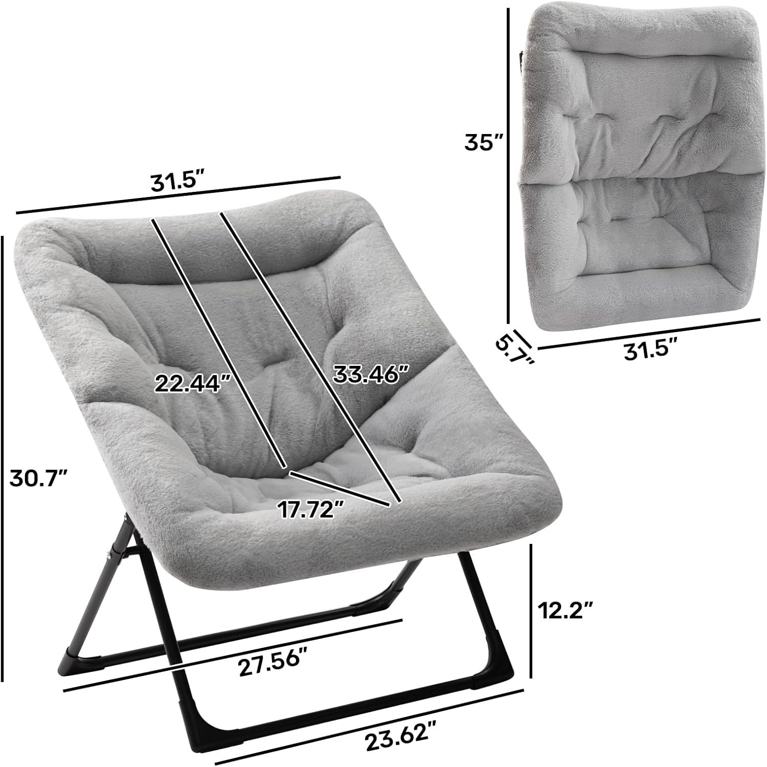 HollyHOME X-Large Saucer Chair, Comfy Oversized Folding Chair, Faux-Fur Reading Chair for Teens, Adults, Foldable Accent Lazy Chair, Metal Frame Lounge Chair for Living Room, Bedroom, Dorm, Grey