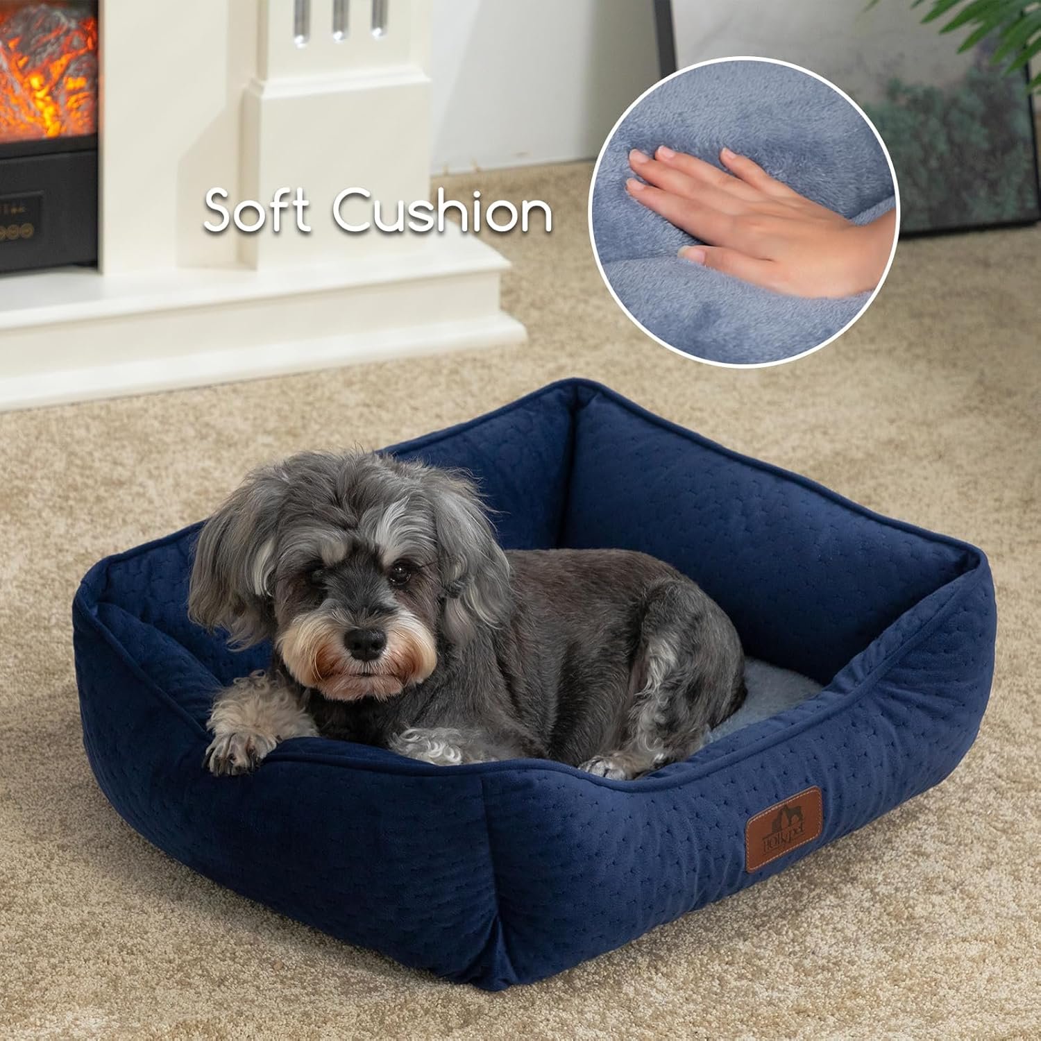 Hollypet Rectangular Dog Bed for Small Medium Dogs, Microwave Quilted Pet Beds Soft Calming Sleeping Durable Pet Cuddler with Anti-Slip Bottom, M, Deep Blue