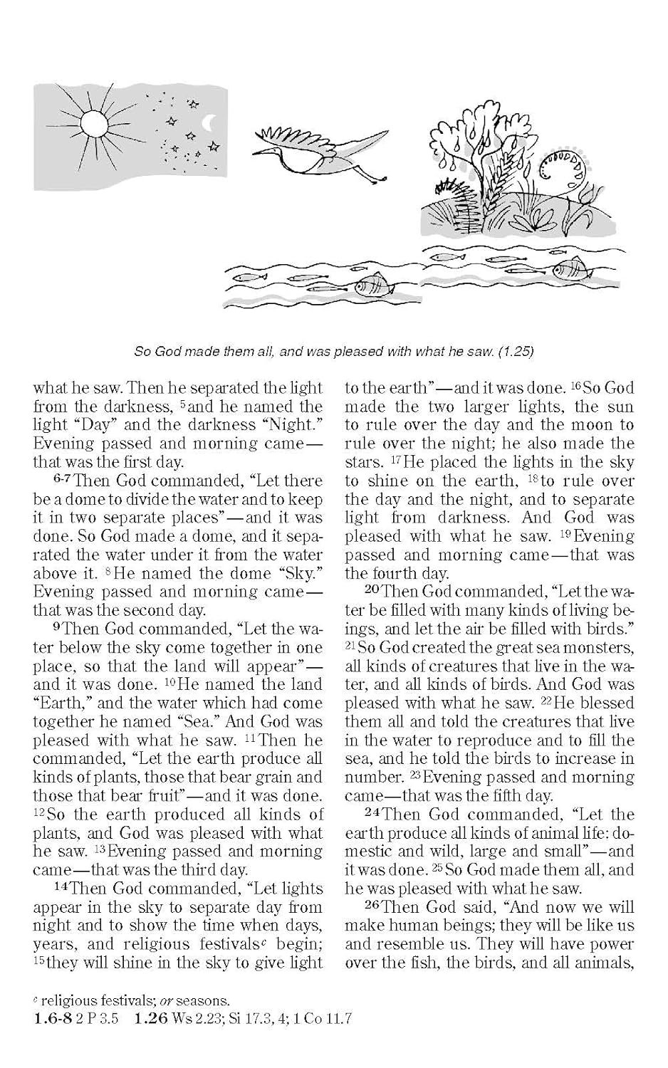 Imprimatur of the Roman Catholic ChurchForeword to the Catholic Edition of the Good News Translation by respected Roman Catholic Biblical scholar Jean-Pierre Ruiz, S.T.D.Revised preface to the GNT BibleKey statement from Vatican II on divine revelationThe new 3-year cycle of readings for Sunday MassReadings for the major feasts of the yearWeekday lectionaryWord listNew Testament passages quoted or paraphrased from the SeptuagintChronology of the BibleSubject indexMapsBurgundy colored hardcover with gold stamping
