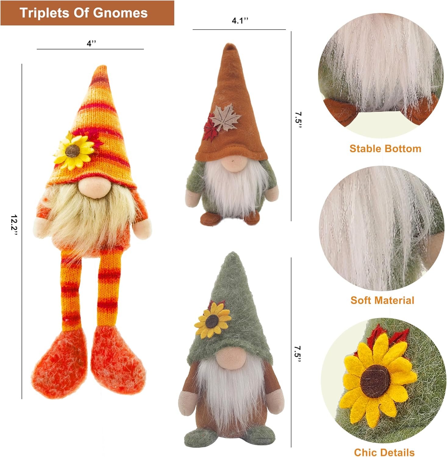 【Multi-purpose】Fall gnomes create a super fun visual in any setting These decorations are perfect to use as a set for Fall tiered tray decor or break apart for multiple areas decor like windowsill, entryway table, foyer spot or shelf