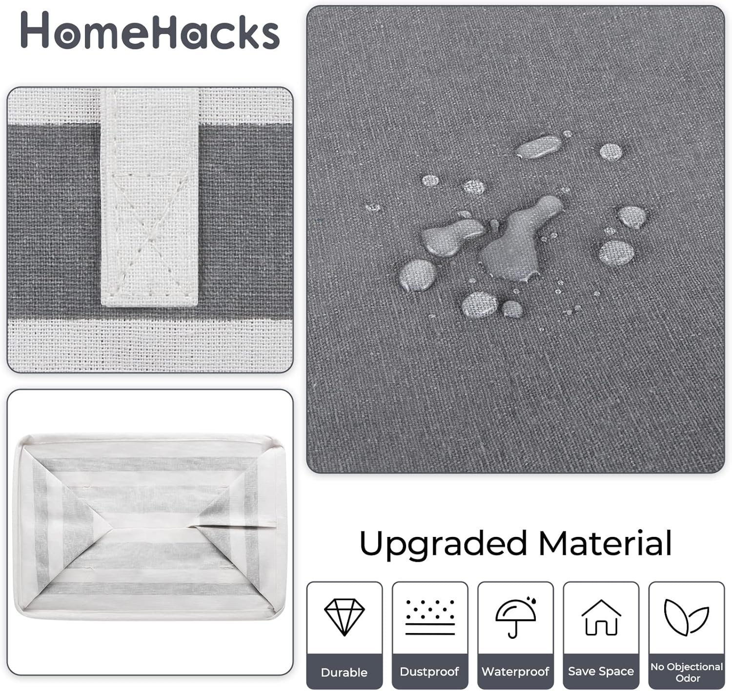 HomeHacks 2 Pack Large Laundry Baskets, Waterproof, Freestanding Laundry Hampers, Collapsible Clothes Hamper with Reinforced Handles in Laundry Room, College Dorm, Bathroom, Bedroom (Grey, 75Lx2)