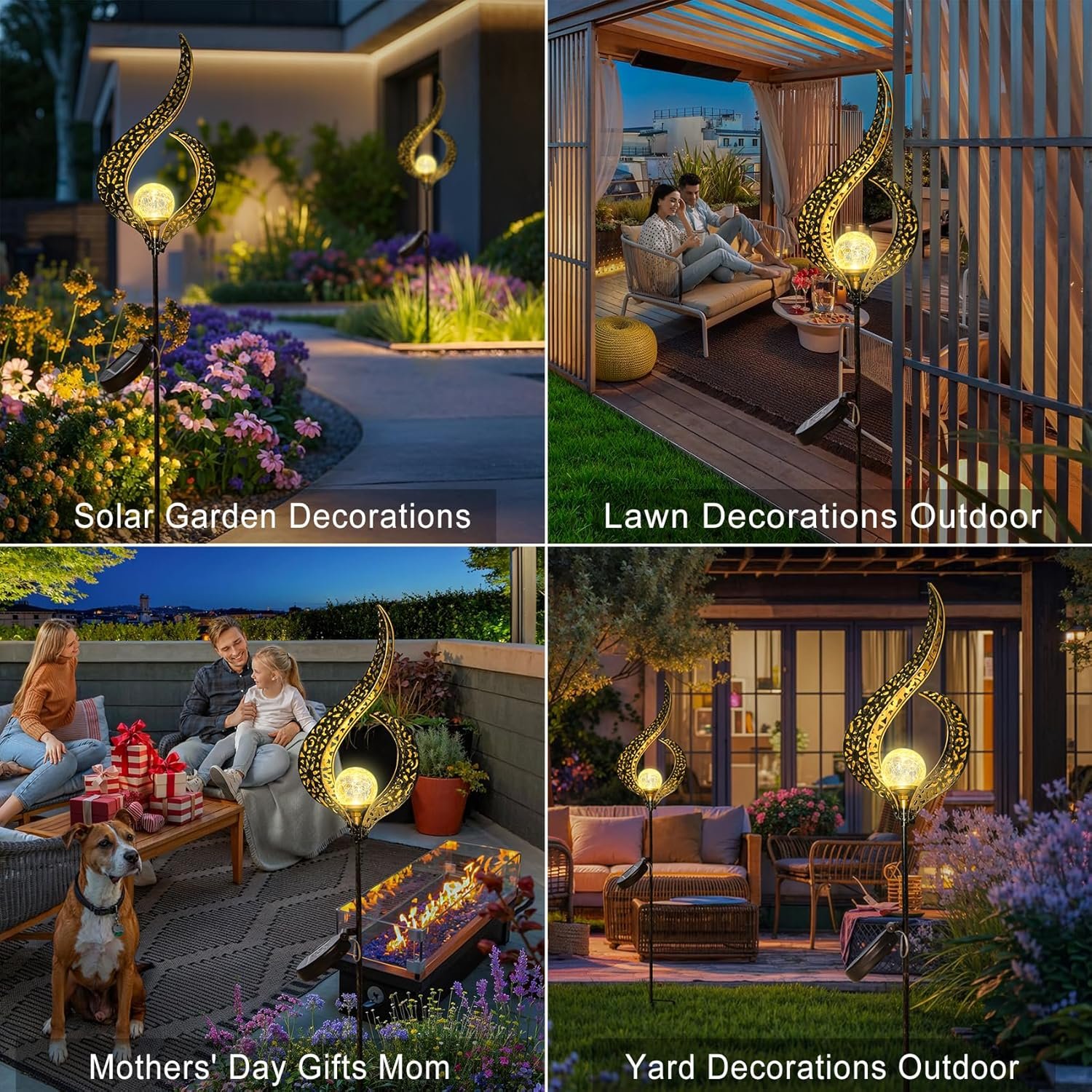 HOMEIMPRO Outdoor Garden Solar Lights Stake, Mothers Day Gifts Mom,Crackle Glass Metal Flower Waterproof LED Fairy Lights for Pathway,Lawn,Patio or Courtyard,Gardening Gifts Women (Bronze)