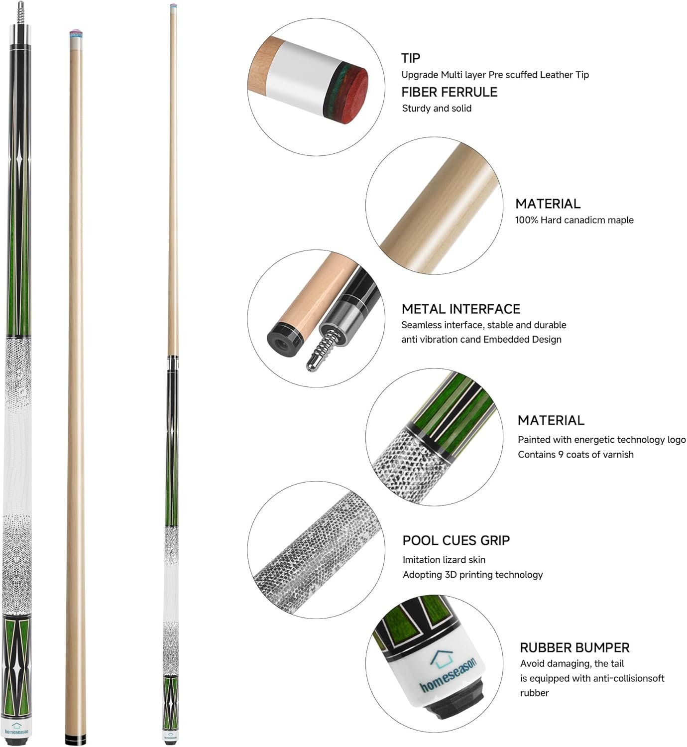 【Worry-Free After-Sales】: Our pool cue sticks offer 30-day return & money back guarantee. 24-hour customer service support, Please contact us via Amazon order message.