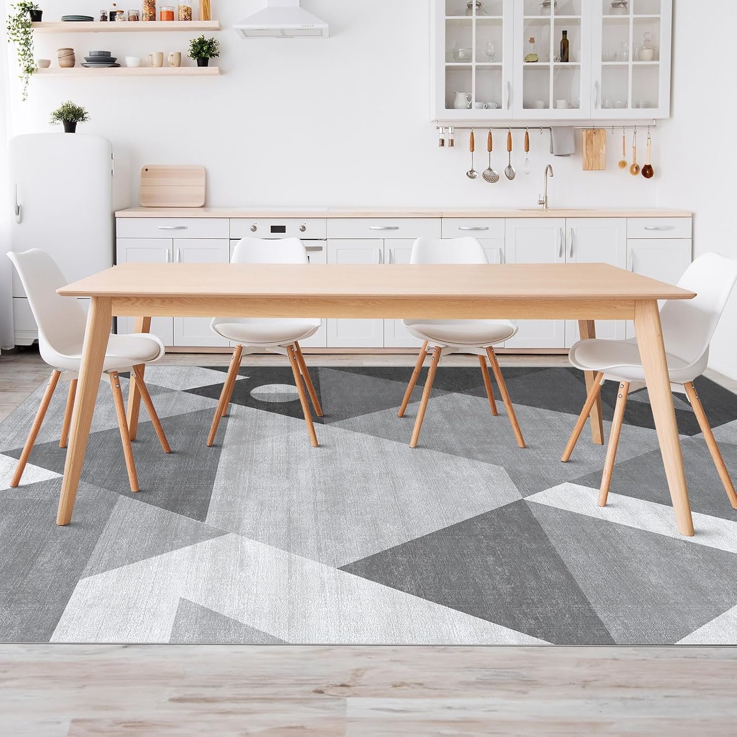 HOMFINE Washable Modern Area Rug – Geometric 5×7 Rugs for Living Room, Bedroom, Machine Washable Rug Soft Non Slip Non Shedding Area Rug – Grey, 5’x7′