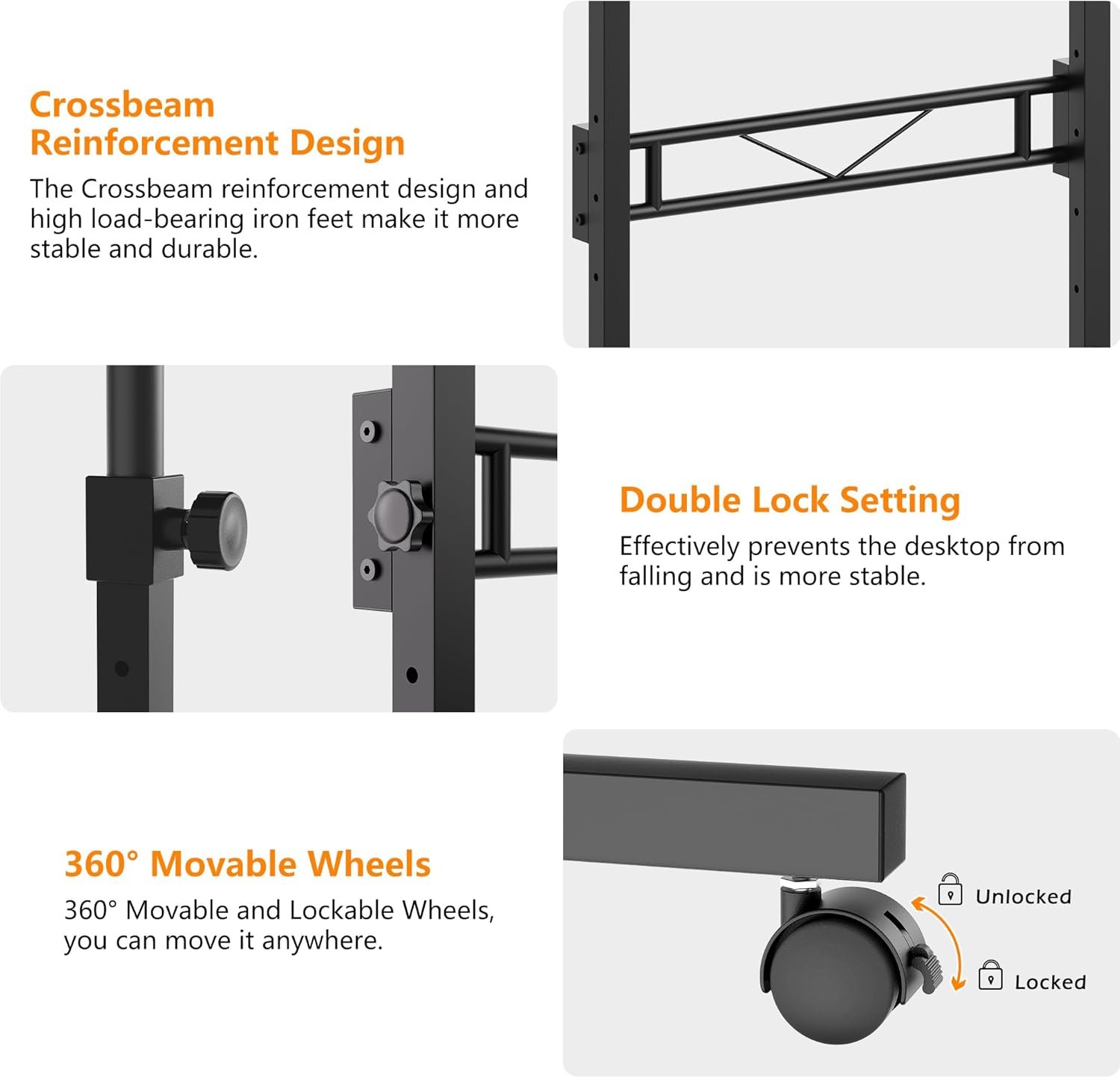 【Lockable Rolling Desk】4 silent wheels make it easy and smooth to move the desk to anywhere in the house. Just step on the 2 lockable wheels lightly, and it will immediately be fixed in place and remain stable.