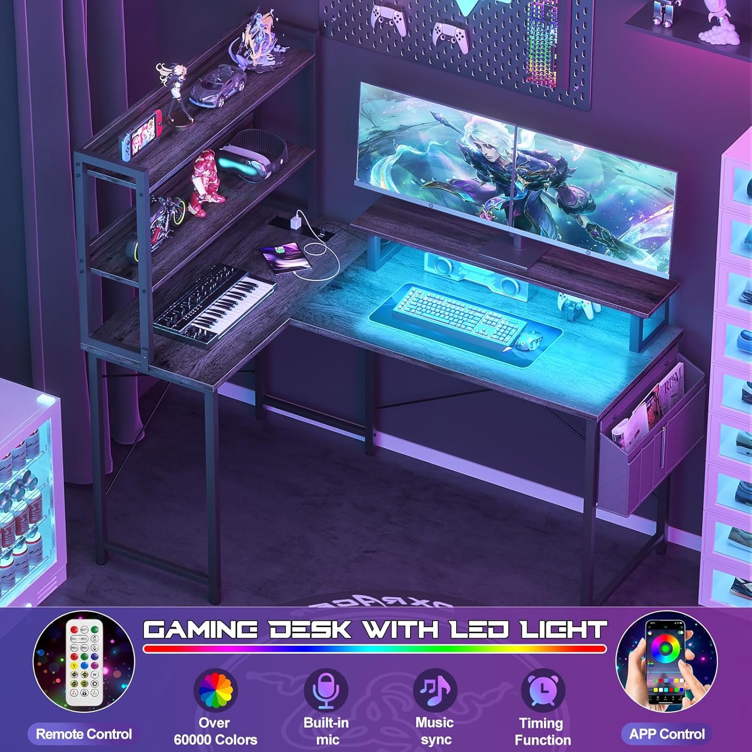 Stunning & Smart Led Light: Mutiple RGB colors to choose from, as well as a variety of modes, music sync, timer functions, etc, with 24 keys remote and smart APP control, The LED light has music synchronization function, and the color of the LED light will change with the rhythm of sound and music, you can easily create a gaming and working atmosphere according to your need.