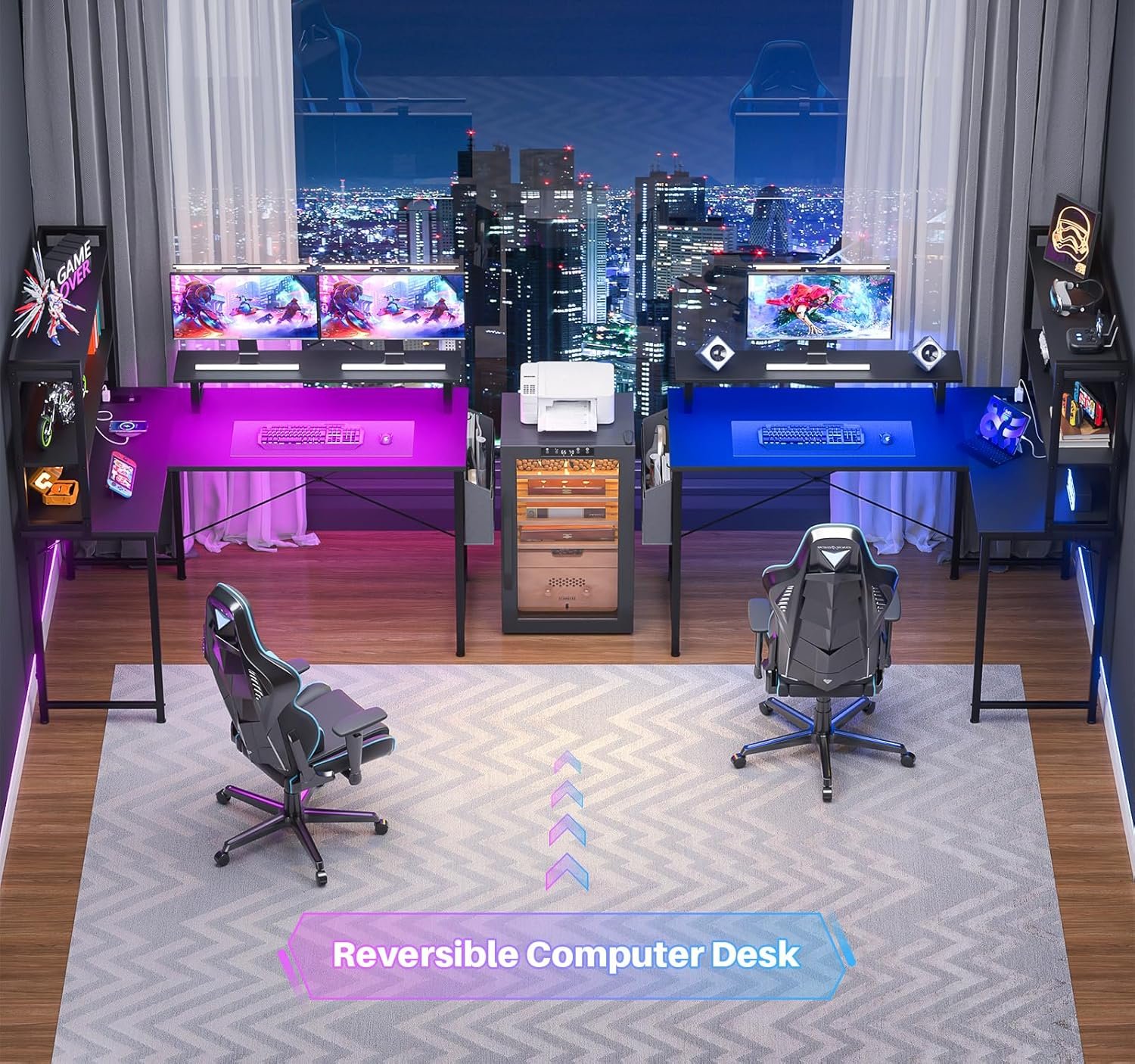 Reversible L Shaped Desk with Hutch: With reversible design, this home office desk can be installed in 2 directions according to your needs, so you can maximize the use of corner space. This desk can be not only as a computer desk, but also served as a gaming desk, writing desk, a study desk, which is suitable for work or entertainment use.