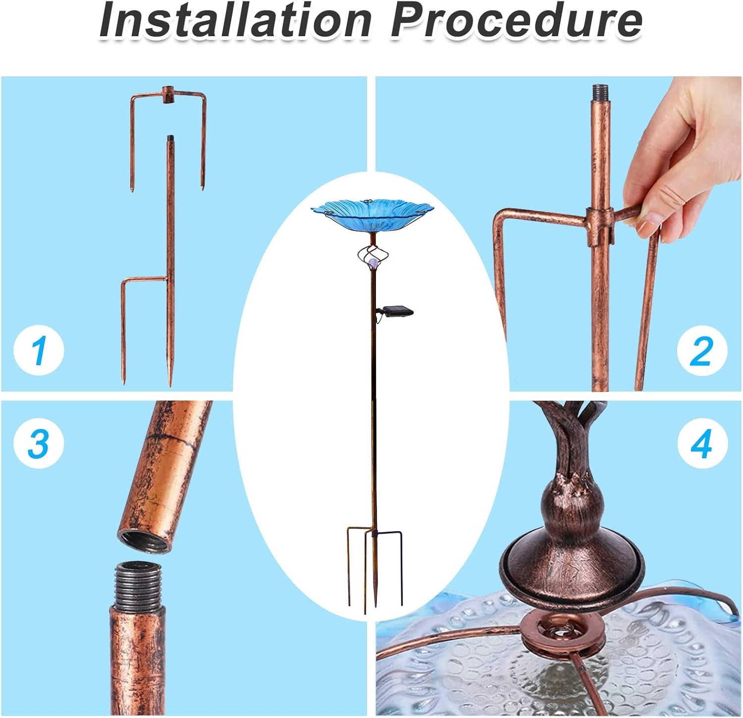 Our ground plug is long enough that you don’t have to worry about the birdbath falling down, we use a four-claw ground plug, which is very stable