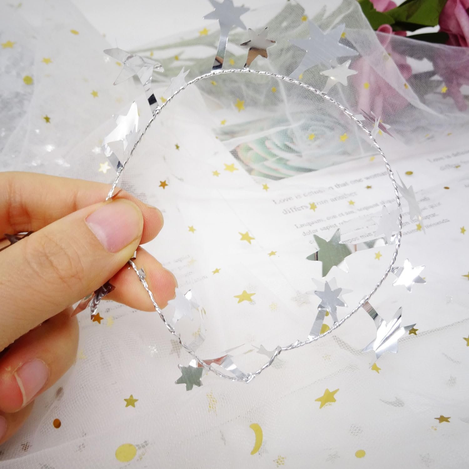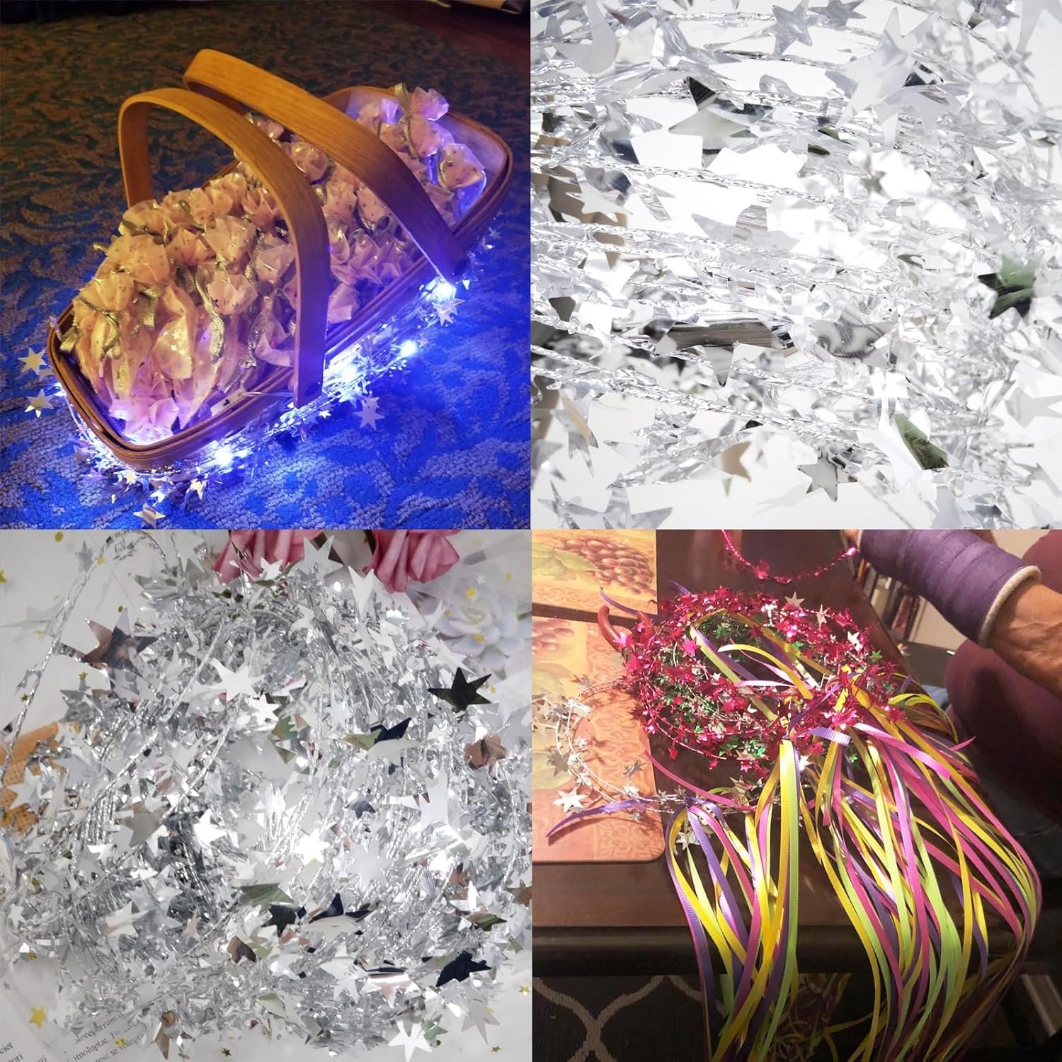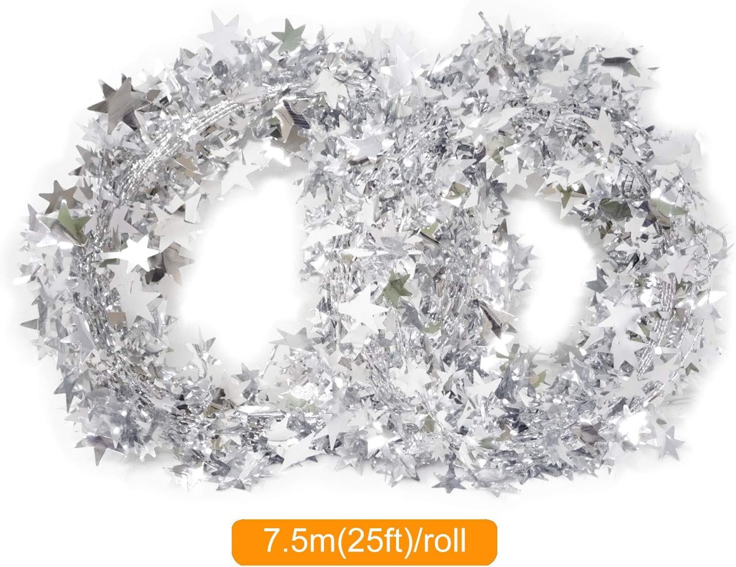 Honbay 2 Rolls of Sparkly Star Tinsel Garlands with Wire for Christmas Tree, Home, Wedding, Birthday, Party, Festive Ornament(Silver)
