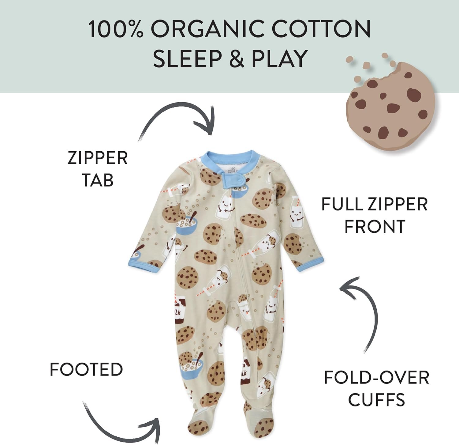 Our sleep & play lives up to its name! This adorable footed sleeper keeps up with baby all day and all night. Friendly features include a zipper front with a tab to protect little chins and fold-over cuffs on the smaller sizes. The full-open zipper makes it easy for those late night diaper changes. 100% soft organic cotton and playful prints make this the perfect one-piece for sleeping, playing, and everything that happens in between. You will want every one of these adorable prints! A registry must-have, this baby pajama makes the best gift for new moms and dads.