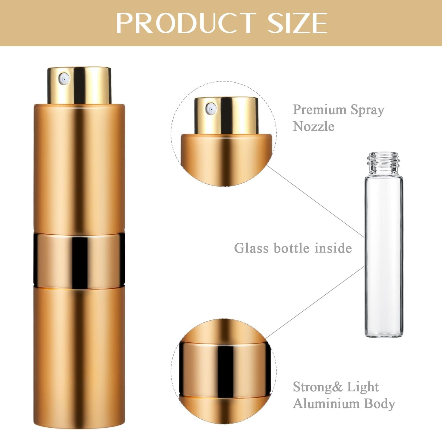 Durable Material Adopted: the outside of the atomizer bottle is mainly made of aluminum, the inner bottle is made of solid glass and the perfume pump is mainly made of plastic, the smooth surface and robust build keep your small cologne spray bottle safe from scratches and breaks, ensuring your fragrance stays pristine