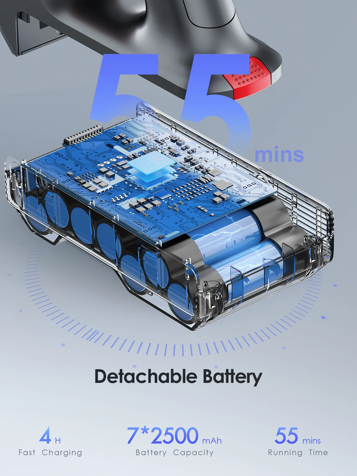 [jusqu’Ã 55 minutes d’autonomie] la batterie de cet aspirateur est complètement chargée en 4 – 5 heures, il y a une batterie de 7 * 2500 mAh, puce de protection de la batterie intelligente pour garantir la durée de vie de la batterie.