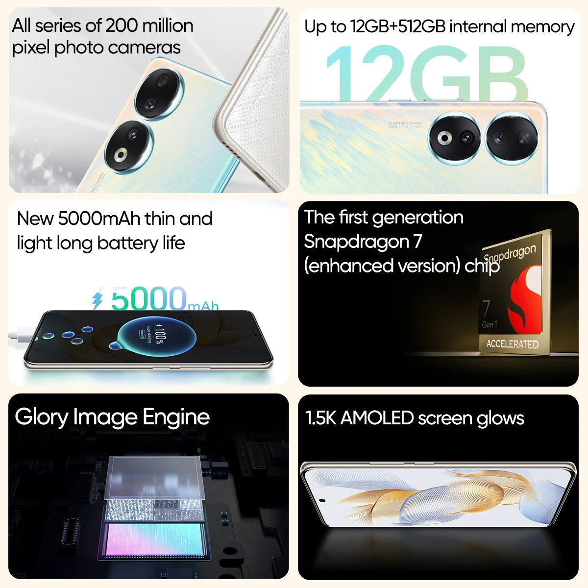 HONOR 90 Global Version 5G Smartphone 200MP Ultra-Clear Camera Snapdragon 7 Gen 1 5000mAh Battery 66W Supercharger 6.7″ Display