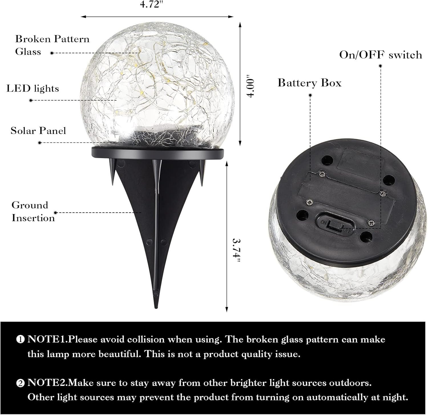 Honoson 4.7 Inch Solar Globe Lights Outdoor Waterproof, Solar Balls for Garden Cracked Glass Ball, Ground Landscape Garden Decor for Patio and Yard Lawn Backyard (4 Pieces)