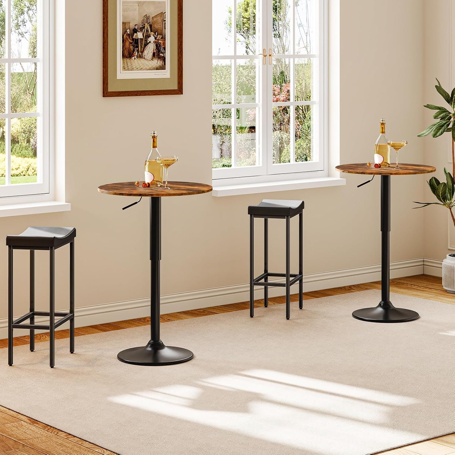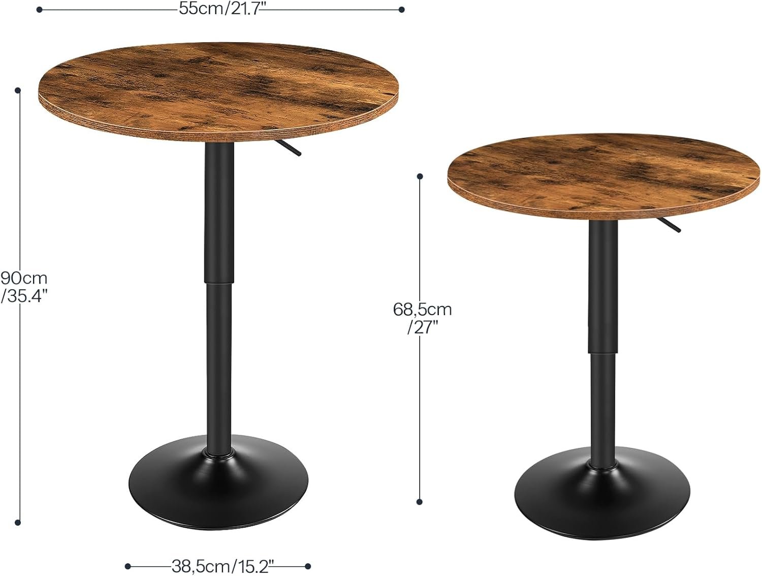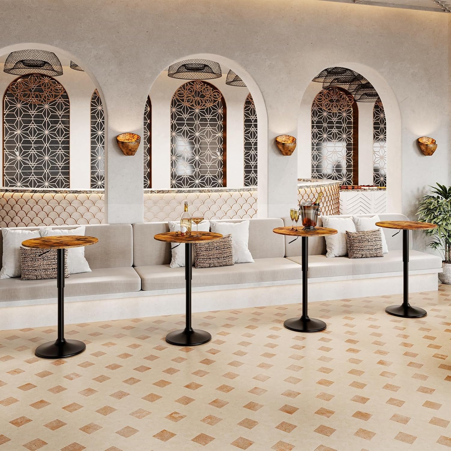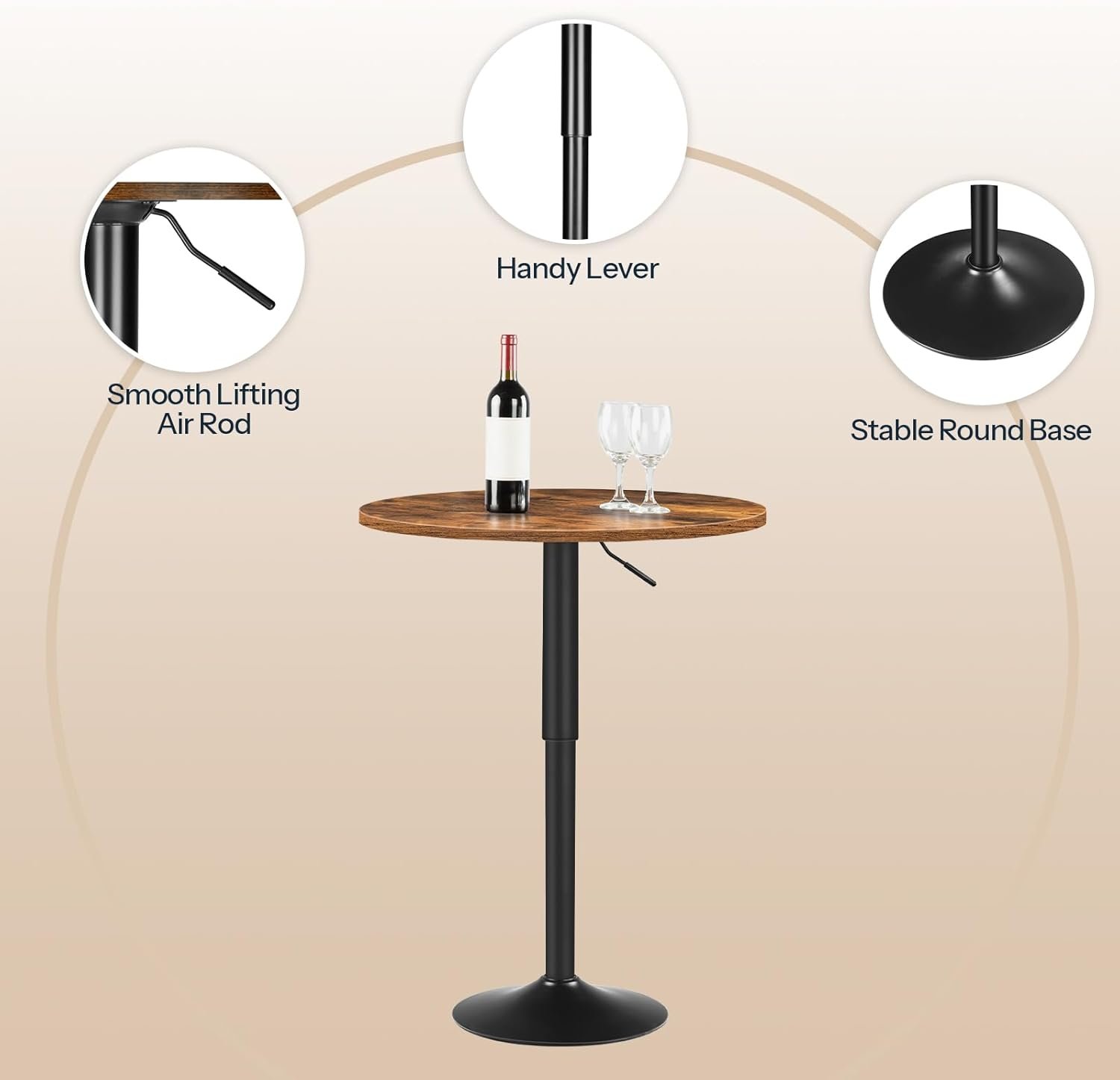 HOOBRO 2 Pcs Bar Table, Height-Adjustable Round Pub Table 27-35.4 Inches with Sturdy Base, Modern Style, Easy to Assemble, Suitable for Small Space, Rustic Brown and Black BF58BTP201G1