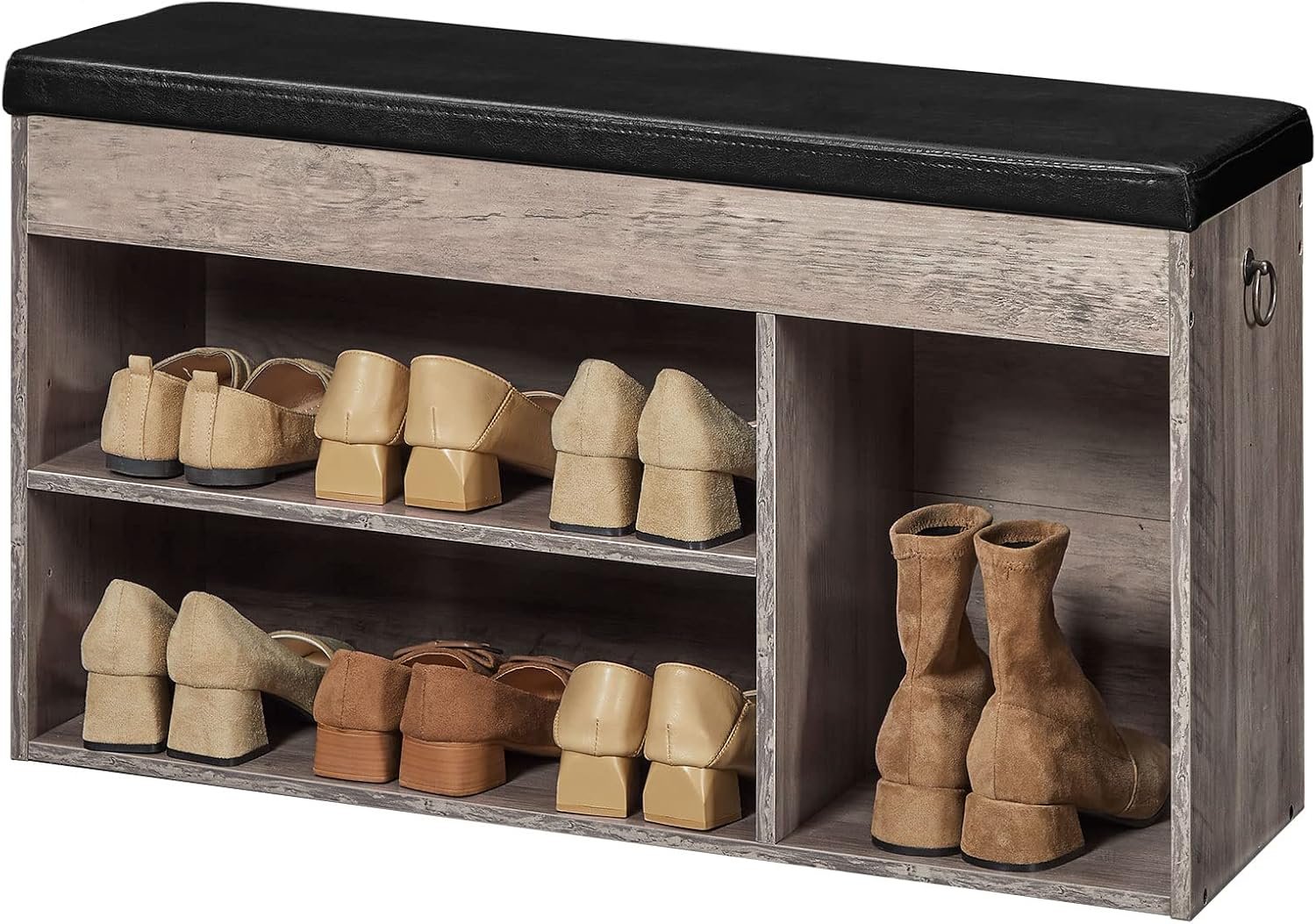 Adjustable Shelves for Multiple Needs: The adjustable shelf of the storage bench can be adjusted according to your needs for free height. High boots can be placed on the right side, making it easy to store all your shoes and boots in one place