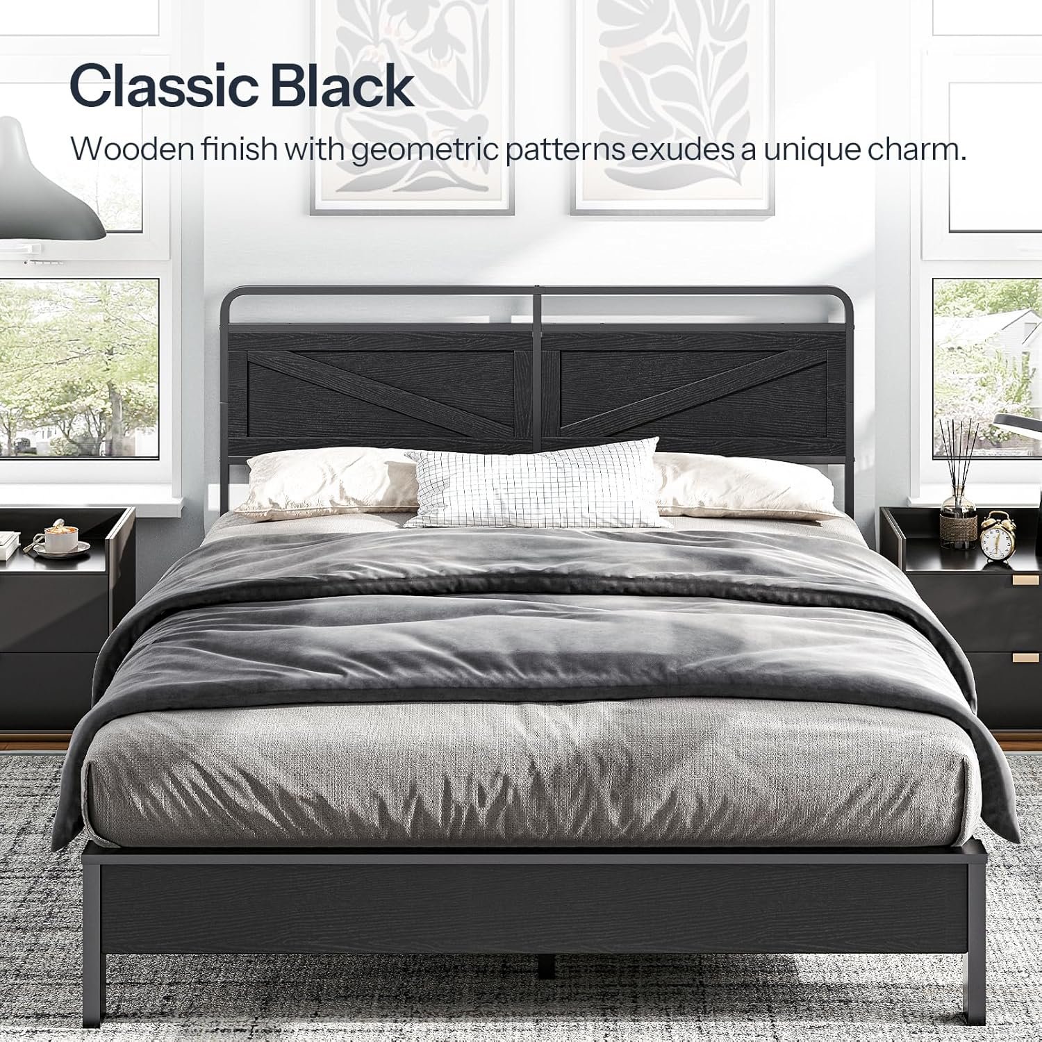 Simple Style: Classic black wooden finish, adorned with geometric patterns, exudes a simple yet timeless aesthetic that seamlessly integrates into modern, contemporary, farmhouse and industrial decor styles. It adds a unique charm to your bedroom