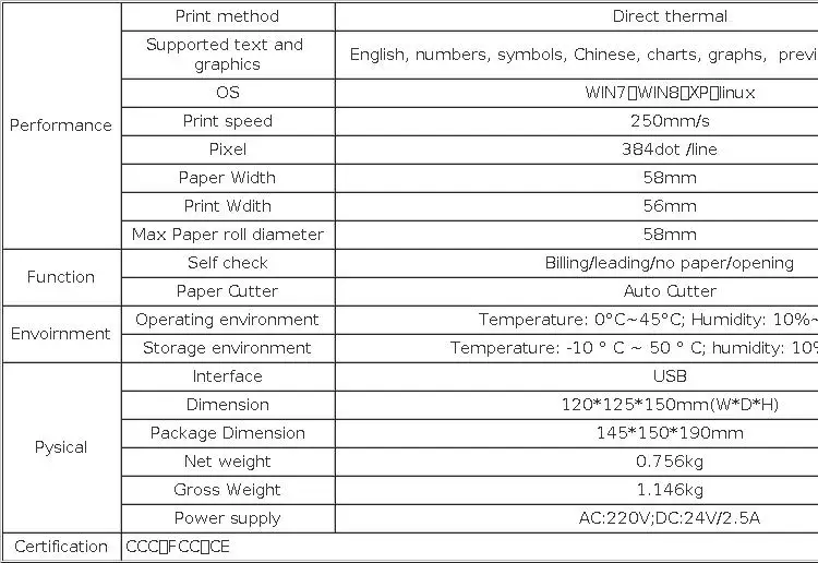 12 reviews for Hot sale High Quality 58mm Ticket Bill Thermal Printer, USB/Blue tooth Thermal Receipt Printer,Mini Desktop Printer With Cut,58E