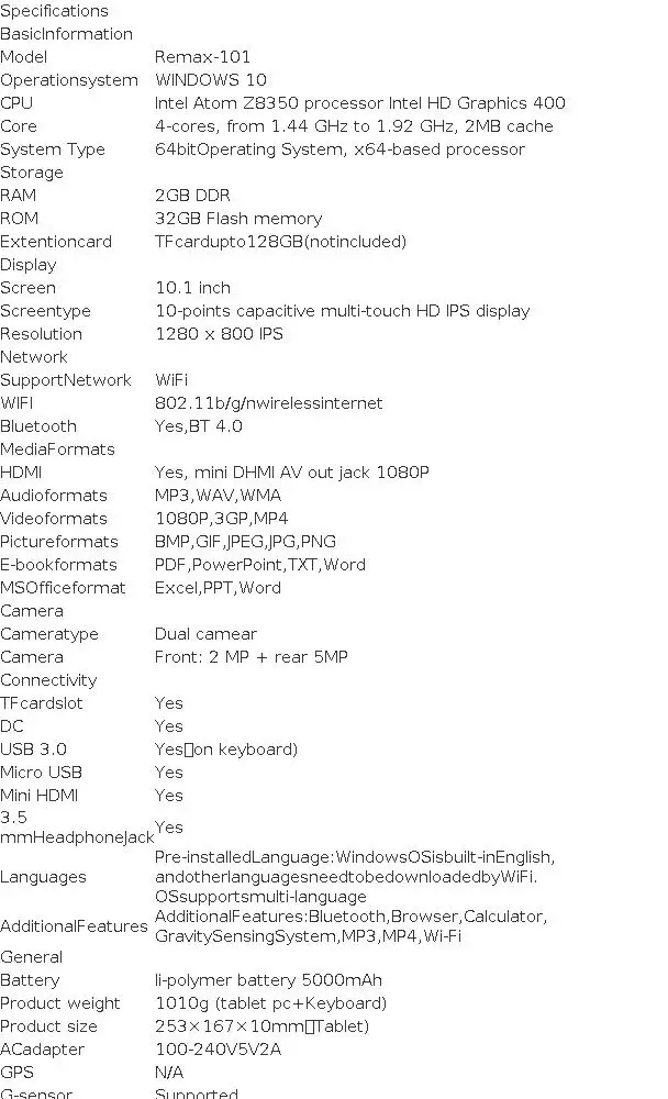 7 reviews for Hot Selling 10.1’’ 2GB DDR 32GB ROM Windows 10 64bit Z8350 4-cores Tablet USB 3.0 Dual Camera With Detachable Keyboard