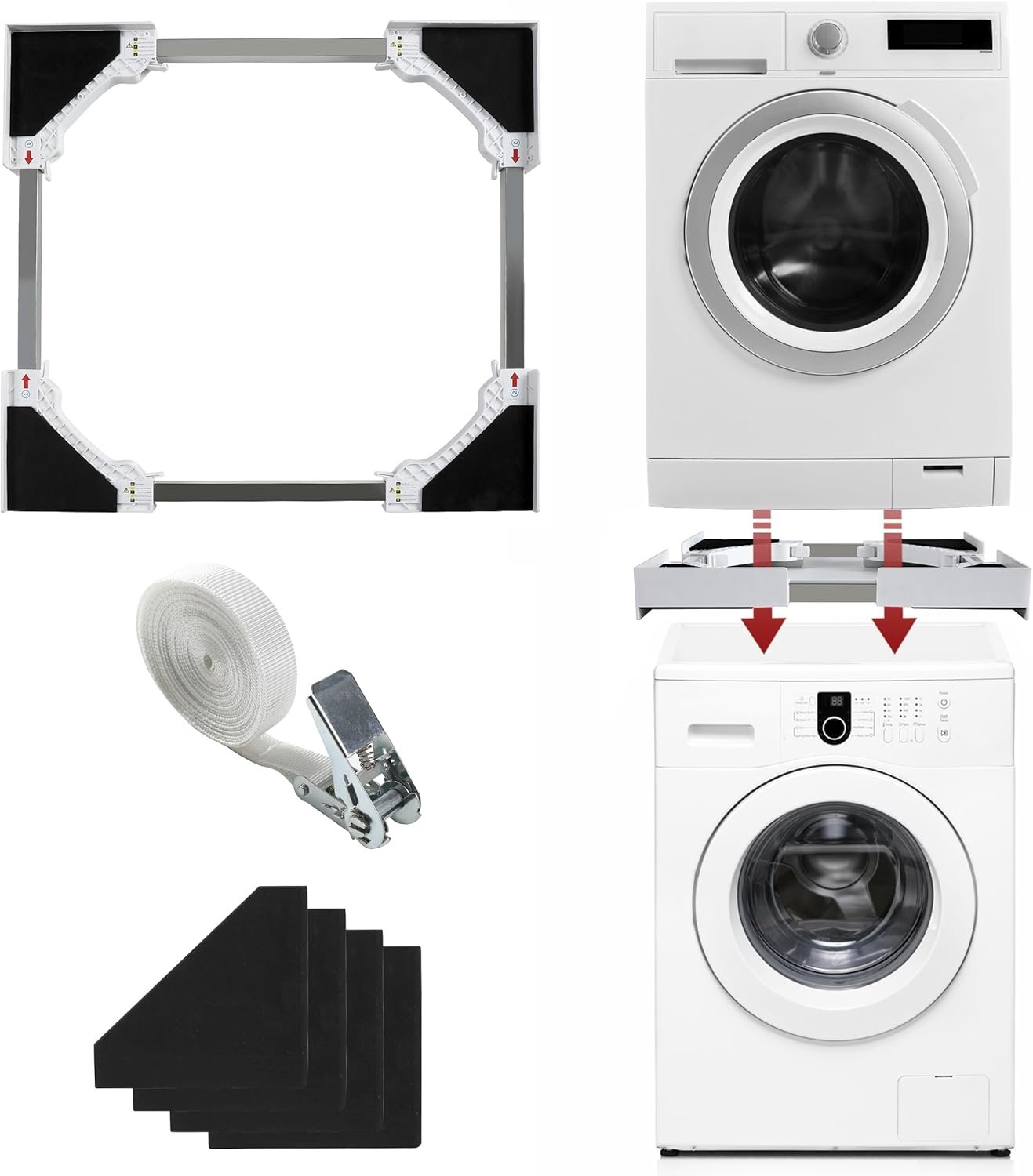 Houseables Washer Dryer Stacking Kit, Stacking Kit For Washer And Dryer, Bracket Between Washing and Drying Machine, Stackable Laundry Machine, Space Saving, Universal, Adjustable 19″ – 29″, w/Strap