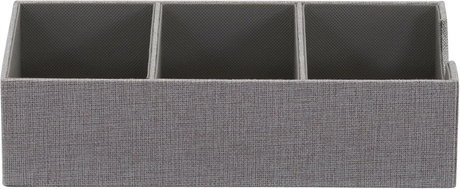 Household Essentials Grey 727-1 Deep 3 Section Drawer Organizer Box for Storage | 12 in x 6.13 in x 3.13