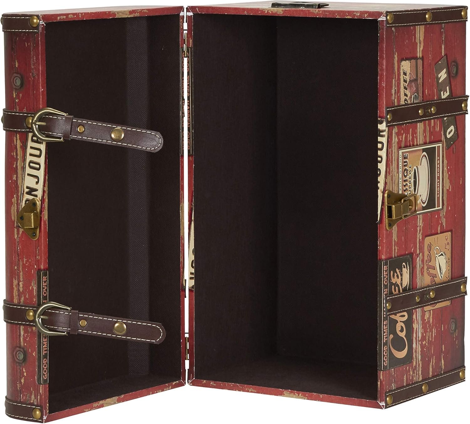 Household Essentials Medium Decorative Trunk, Coffee Shop Faux Decoupage, Antique Exterior, Leather and Metal Accents, Fabric Interior, Hinged Lid, Brown