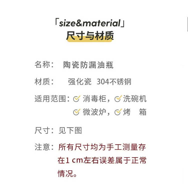 Household kitchen small oil bottle does not hang oil ceramic soy sauce vinegar seasoning bottle kitchen utensils