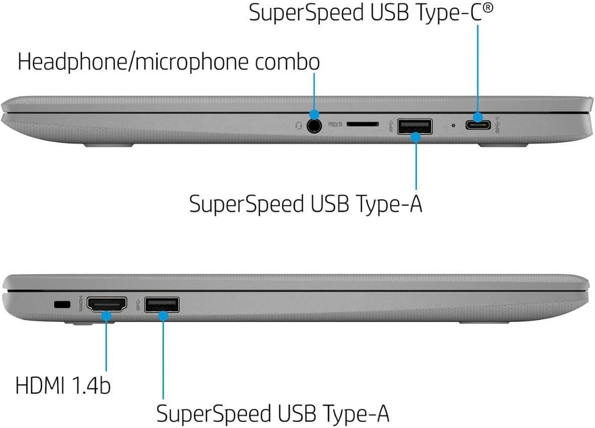 2023 Newest HP 14″ Chromebook: Get the responsive performance you’re looking for with an Intel processor and 64 GB eMMC storage. Stay productive with compatible apps like Microsoft Office, Google Workspace, and more. The HP True Vision HD camera is perfect for video chats from wherever the day takes you. See more. Play more. With the seamless integration of the Google ecosystem. Chrome OS gives you a fast, simple, and secure online experience with built-in protection and automatic backups for worry-free browsing.Display: 14″ diagonal, HD (1366 x 768), micro-edge, anti-glareGraphics: Intel UHD Graphics 600Processor: Intel Celeron N4120 (Base clock 1.10 GHz, up to 2.6 GHz burst frequency, 4 MB L2 cache, 4 cores, 4 threads)Memory: 4GB LPDDR4Storage: 64 GB eMMCKeyboard: English keyboard Built-in Microphone: YesBuilt-in Bluetooth: YesBuilt-in Webcam: YesBattery Life: Up to 14 hoursWireless Connectivity: Wireless-AC 802.11a/b/g/n/ac (2×2) Wi-Fi and Bluetooth 5 comboPorts: 2x SuperSpeed USB Type-A 1x SuperSpeed USB Type-C1x HDMI 1.4b 1x Headphone/microphone combo 1x MicroSD Card ReaderOperating System: Chrome OSColor: Modern GrayDimensions (L x W x H): 12.85″ x 8.94″ x 0.72″Weight: 3.35 poundsAccessory: Authorized HubxcelAccessories